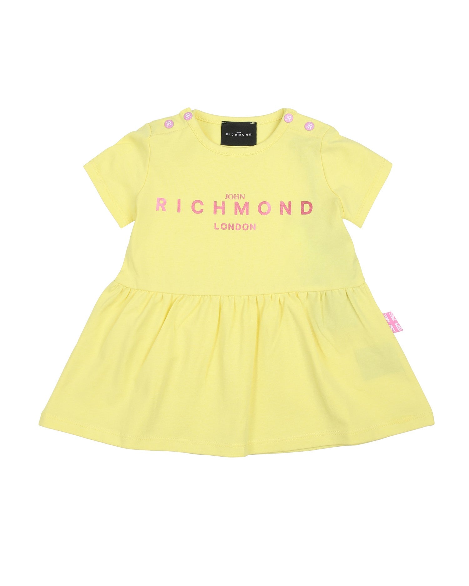 Abito Richmond giallo con scritta rosa sul davanti