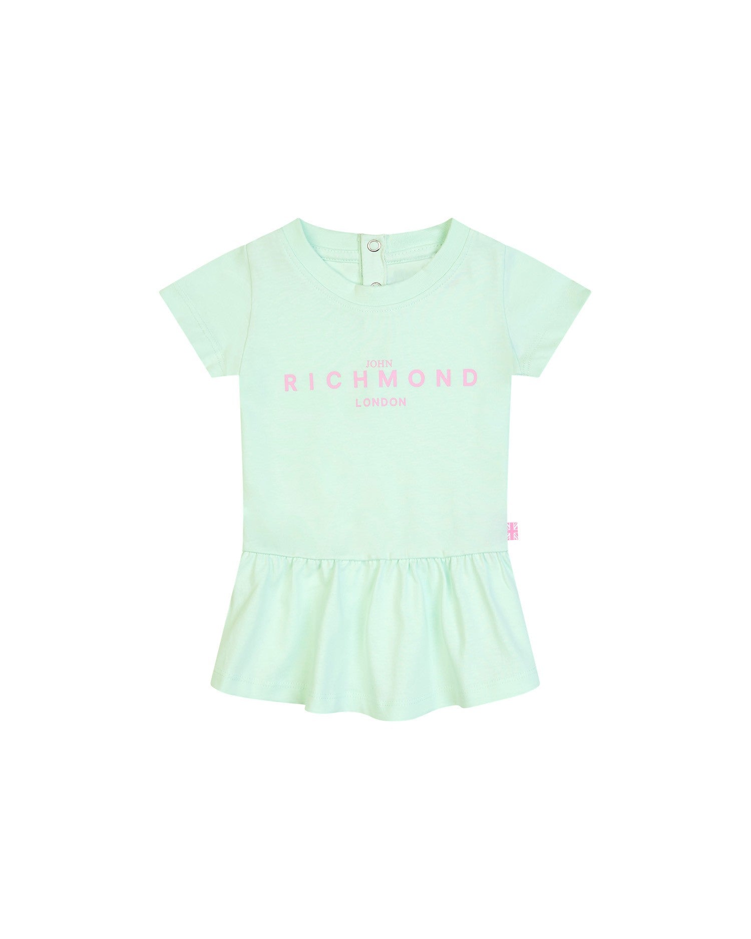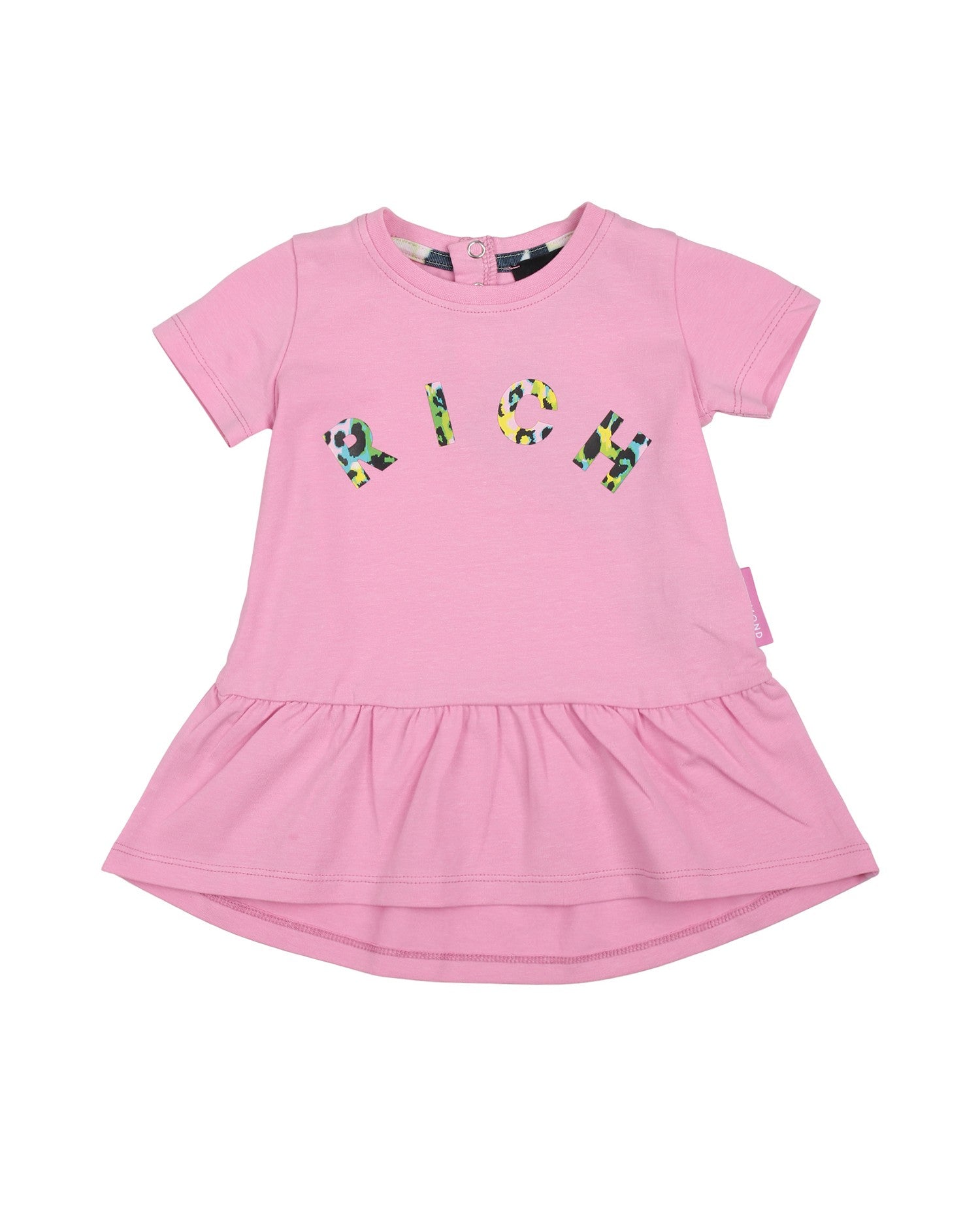 Abito Richmond di colore rosa con scritta sul davanti con arricciatura dalla vita
