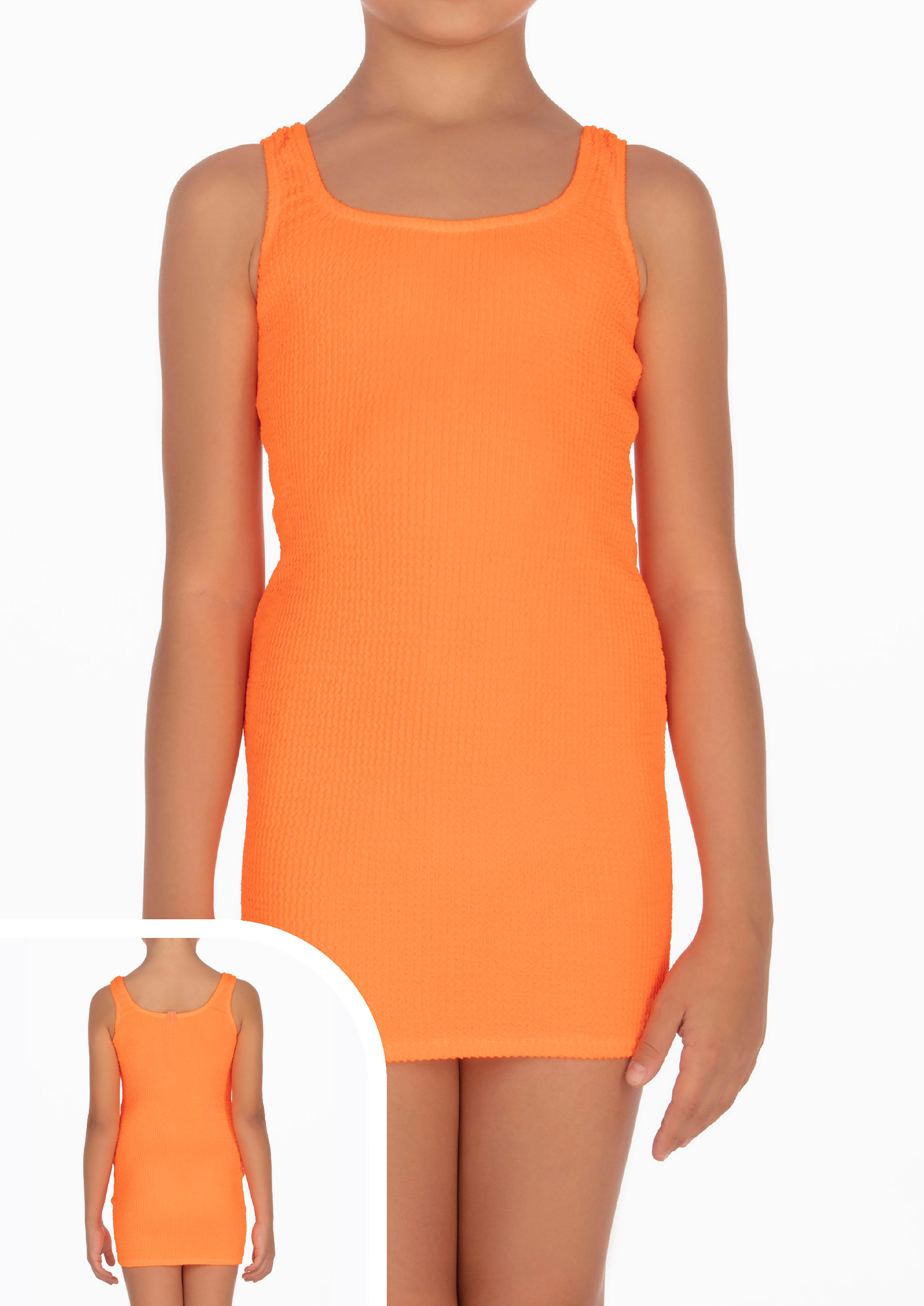 Abito F**K fuori acqua in tessuto lycra crepe color arancio fluo