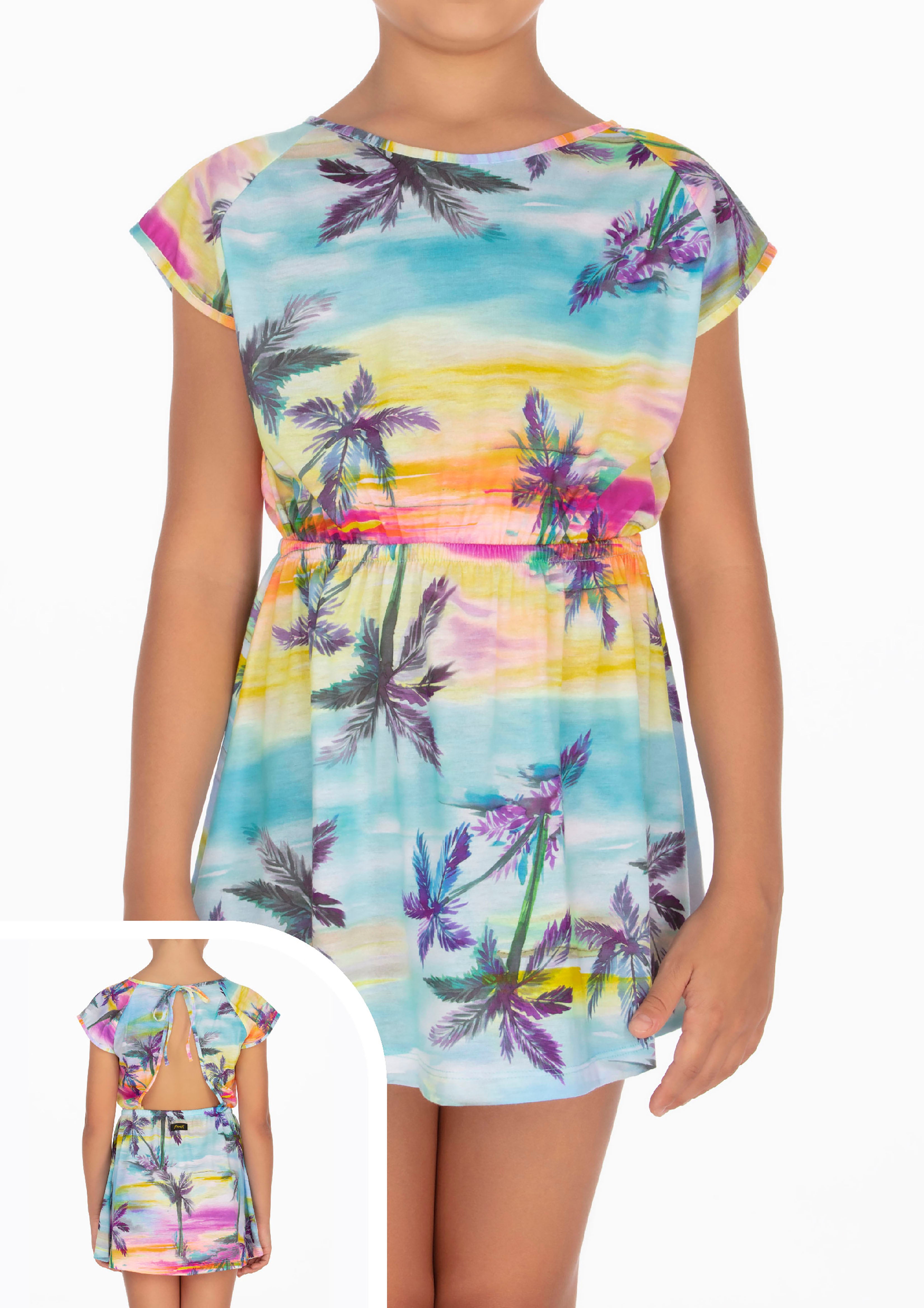 Abito F**k fuori acqua multicolor con fantasia palme