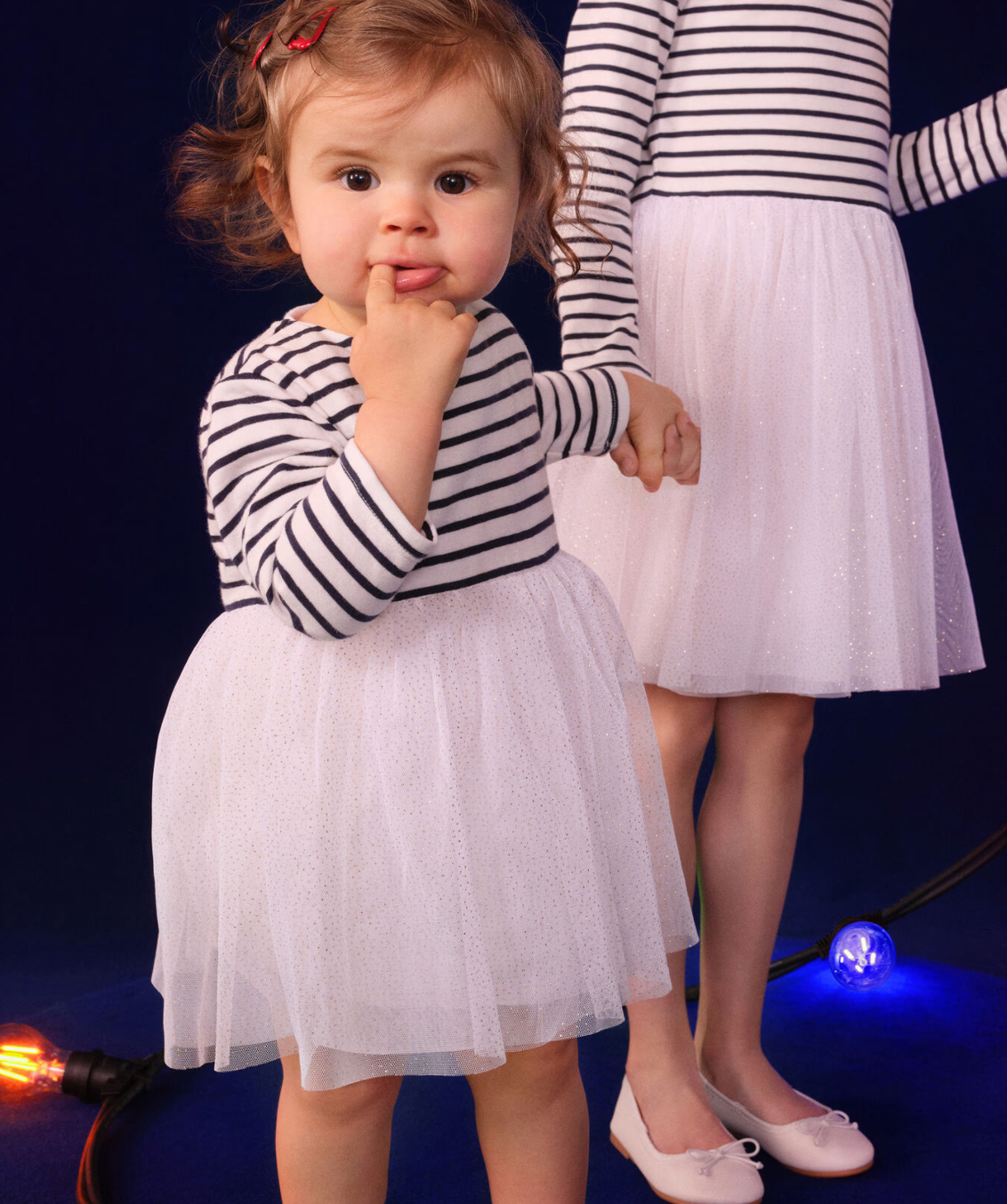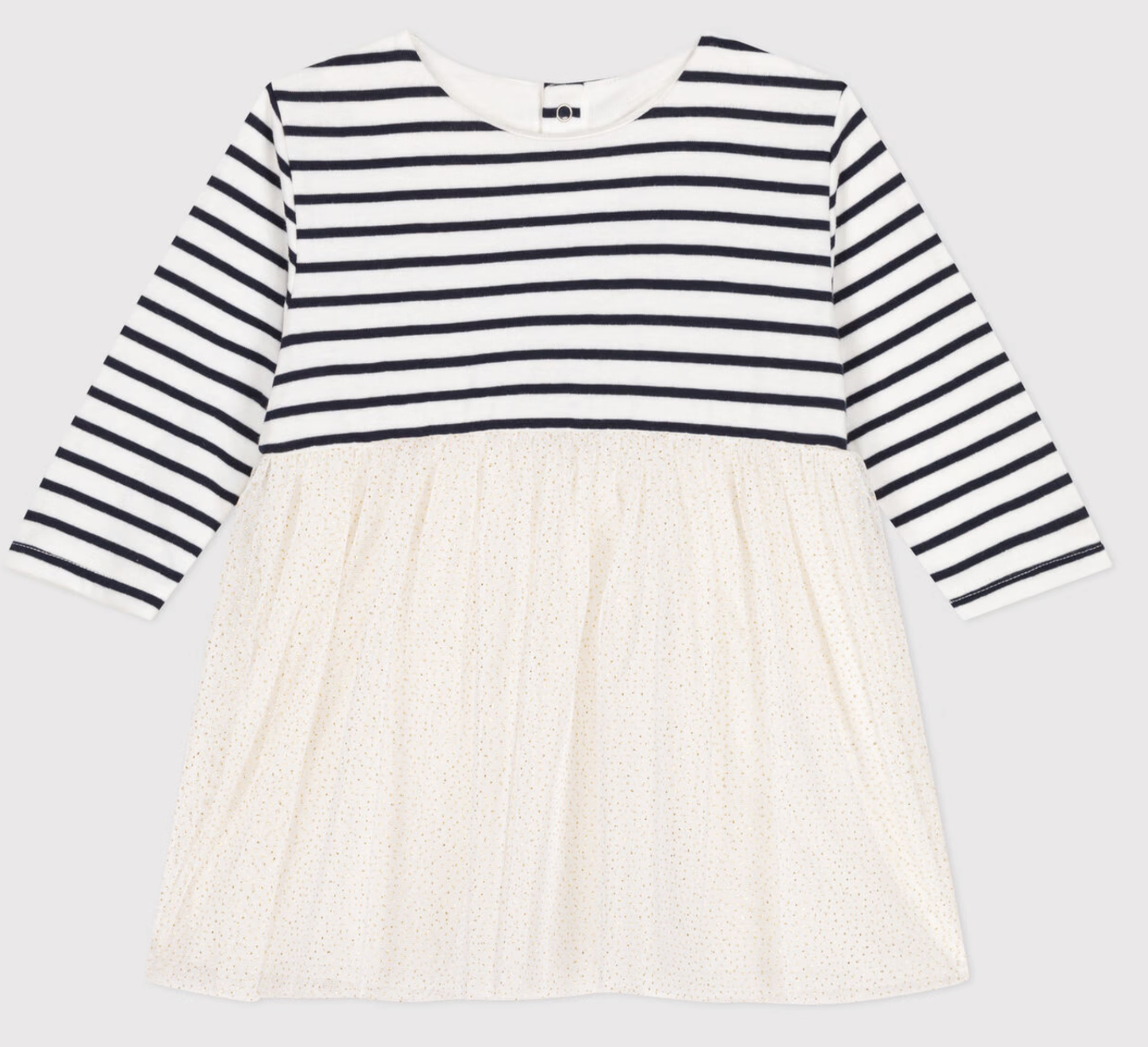 Abito Petit Bateau a manica lunga a righe con tulle sul fondo bianco