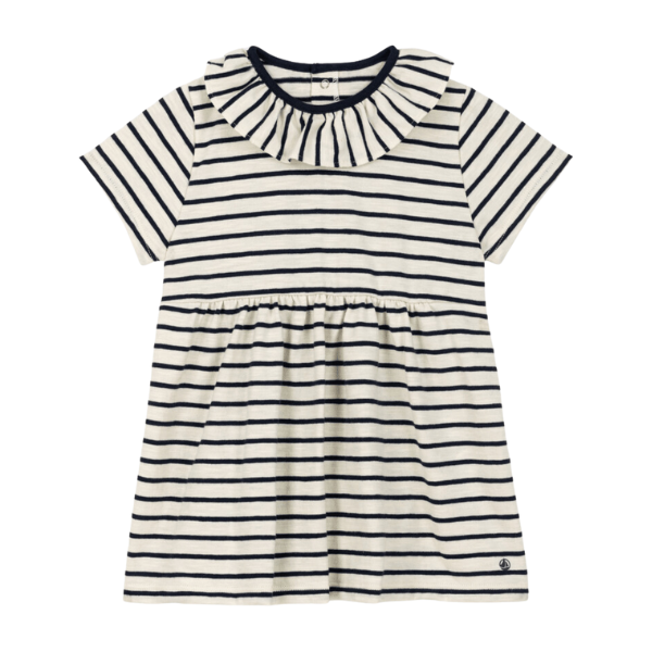 Abito Petit Bateau a manica corta in jerseynfantasia a righe e colletto raffinato