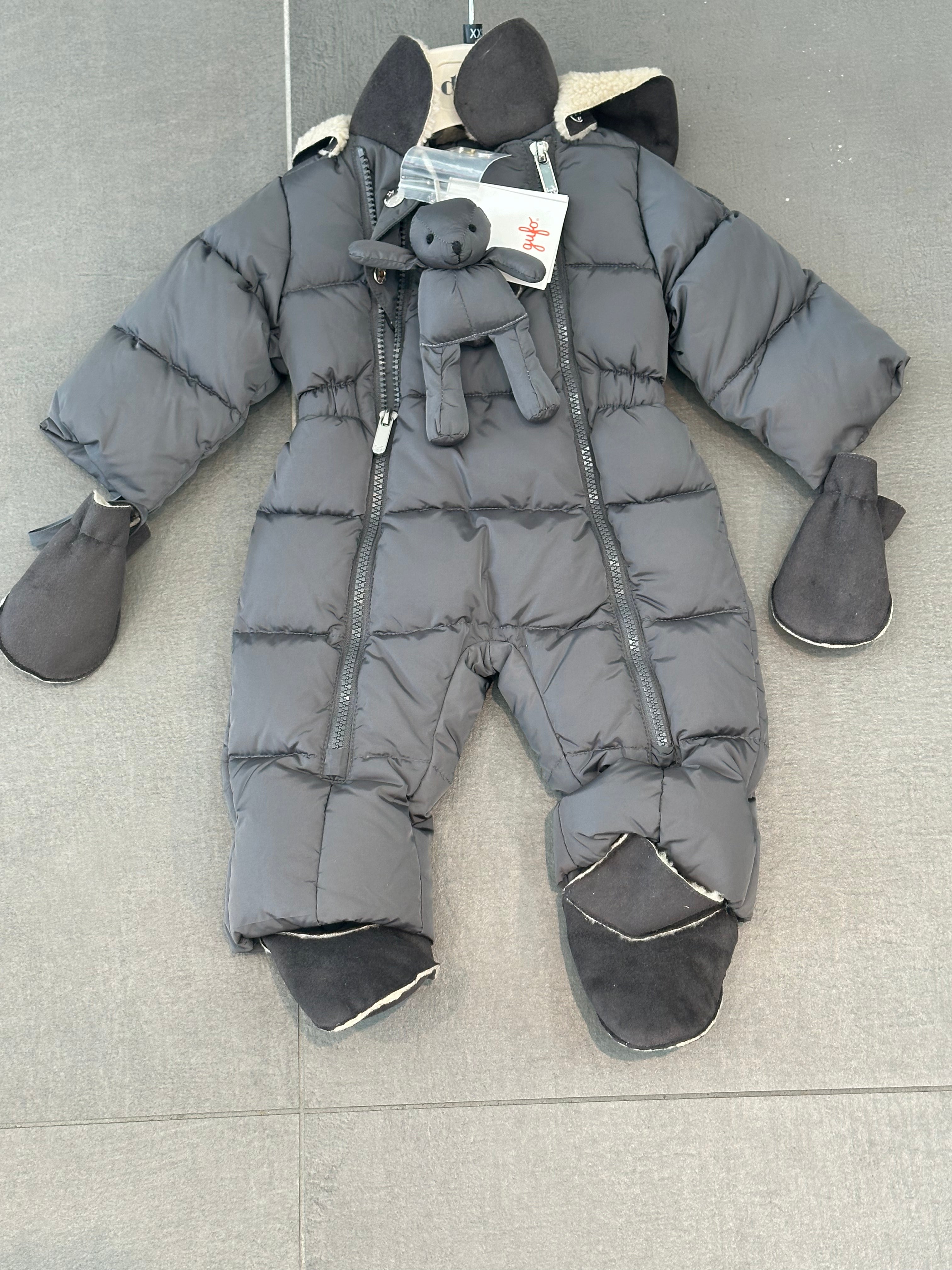 IlGufo salopette imbottita grigia con colletto mussole e piedi in alcantara tono su tono full zip