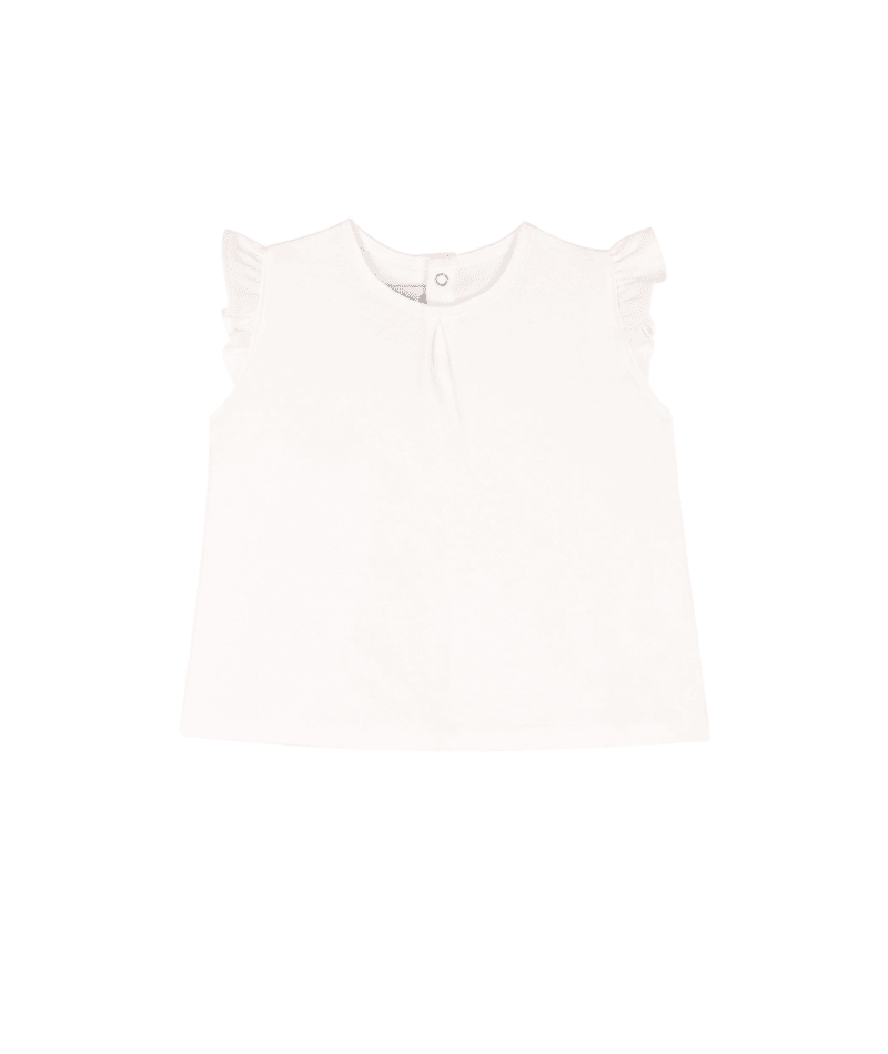 Tshirt Petit Bateau Bianca con manica rouches