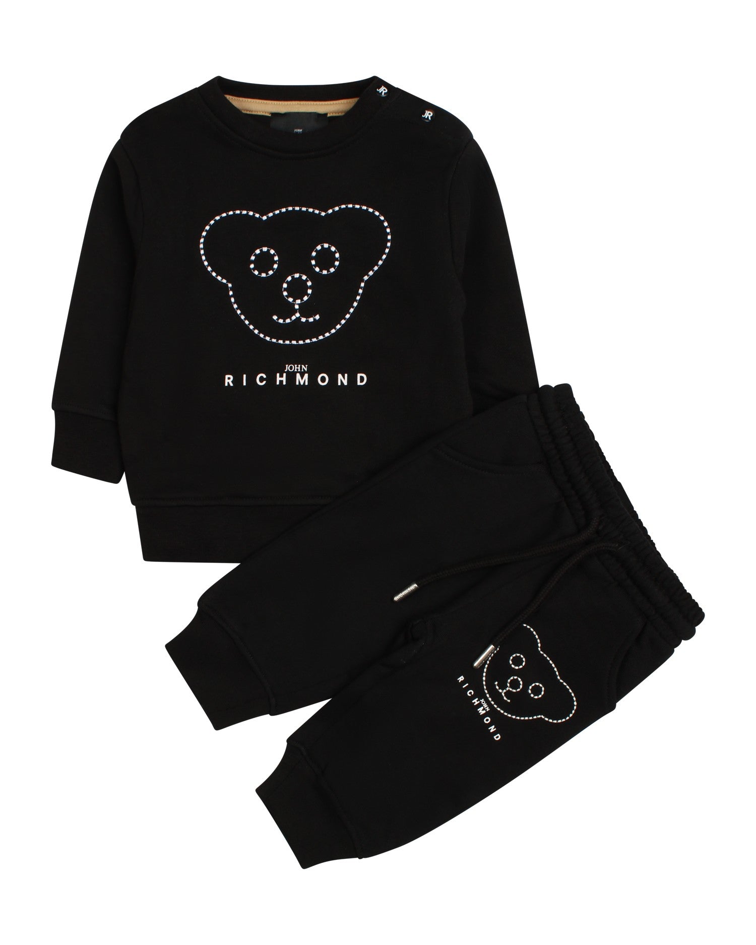 Completo Richmond felpa nera con orso ricamato e pantalone nero
