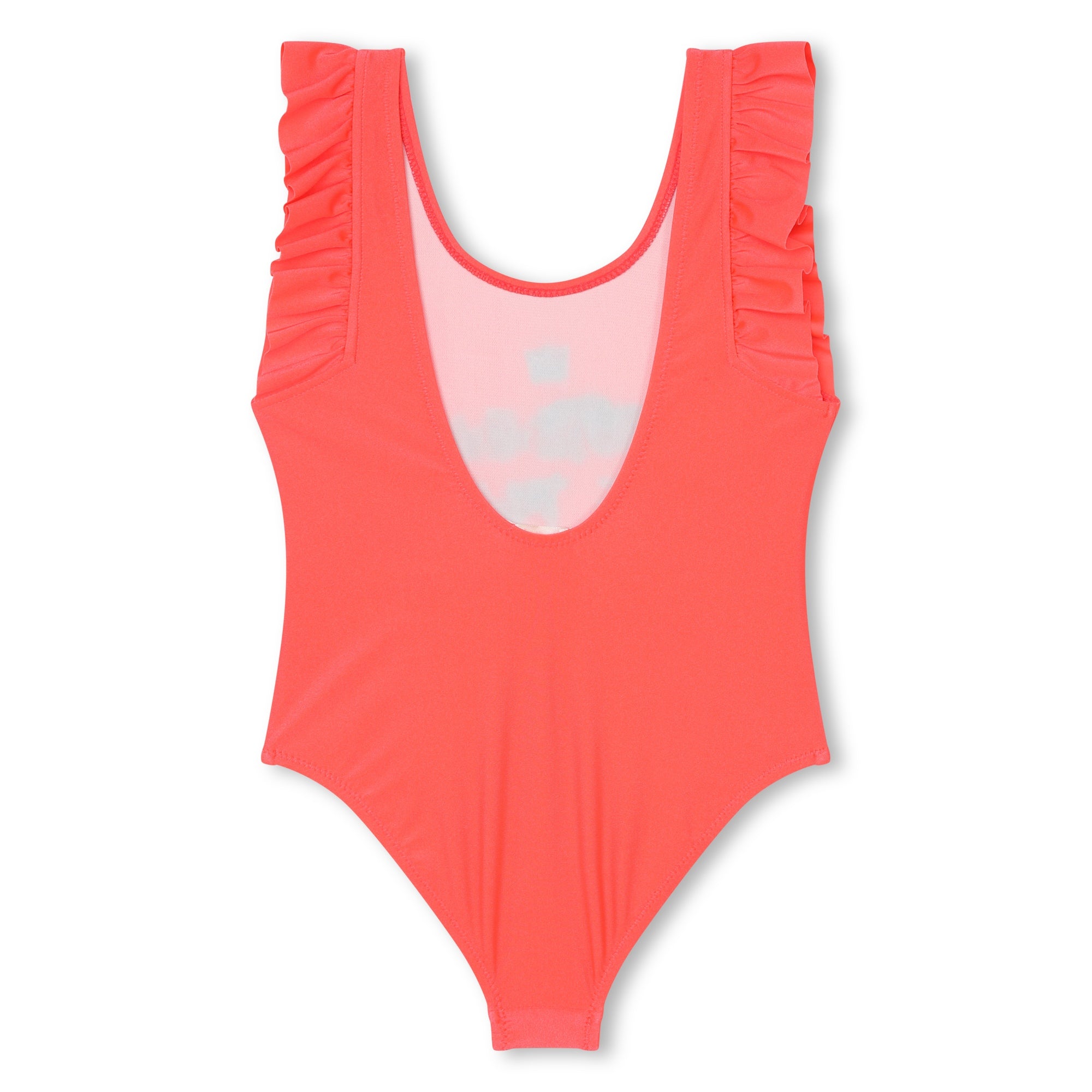Costume intero Billieblush di color arancio fluo con scritte sul davanti e rouches sulle spalline