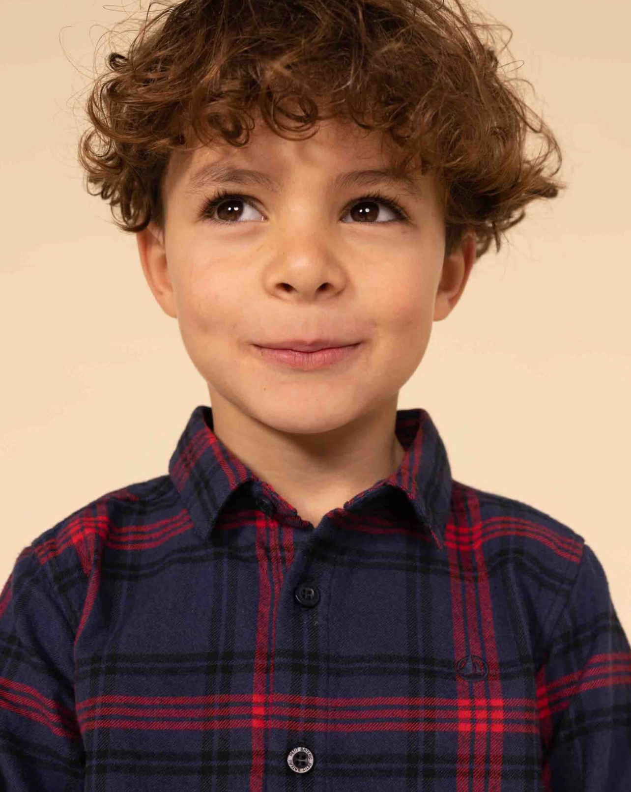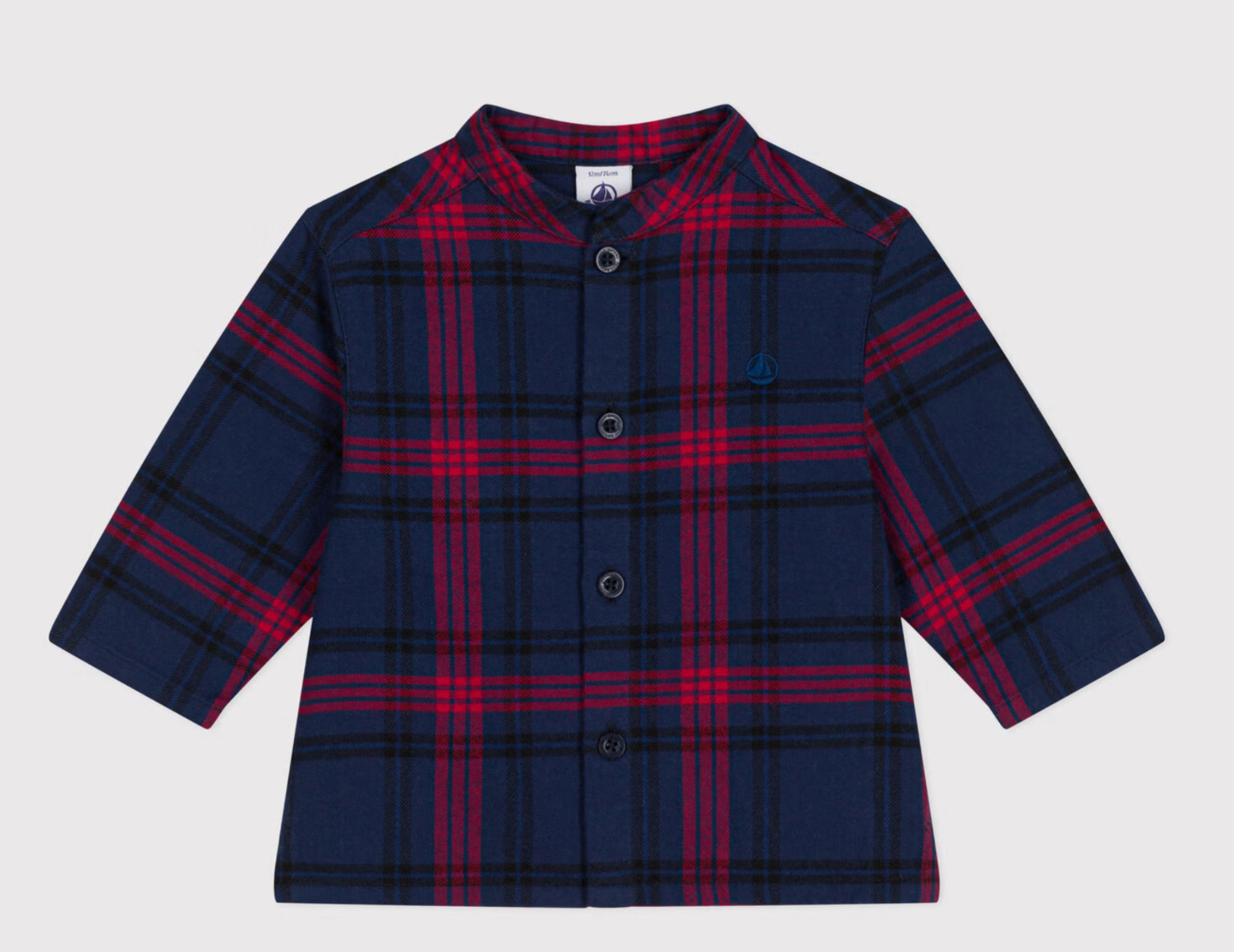Camicia Petit Bateau a quadri in flanella di cotone con collo coreana
