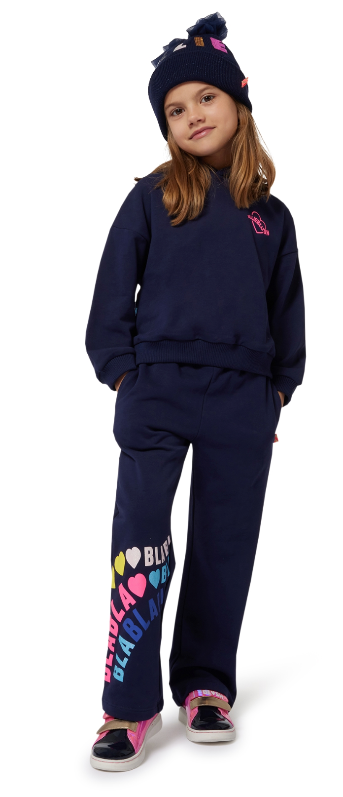 Cappello con scritta in paillettes colorata e scaldacollo Billieblush blu con b pailettes