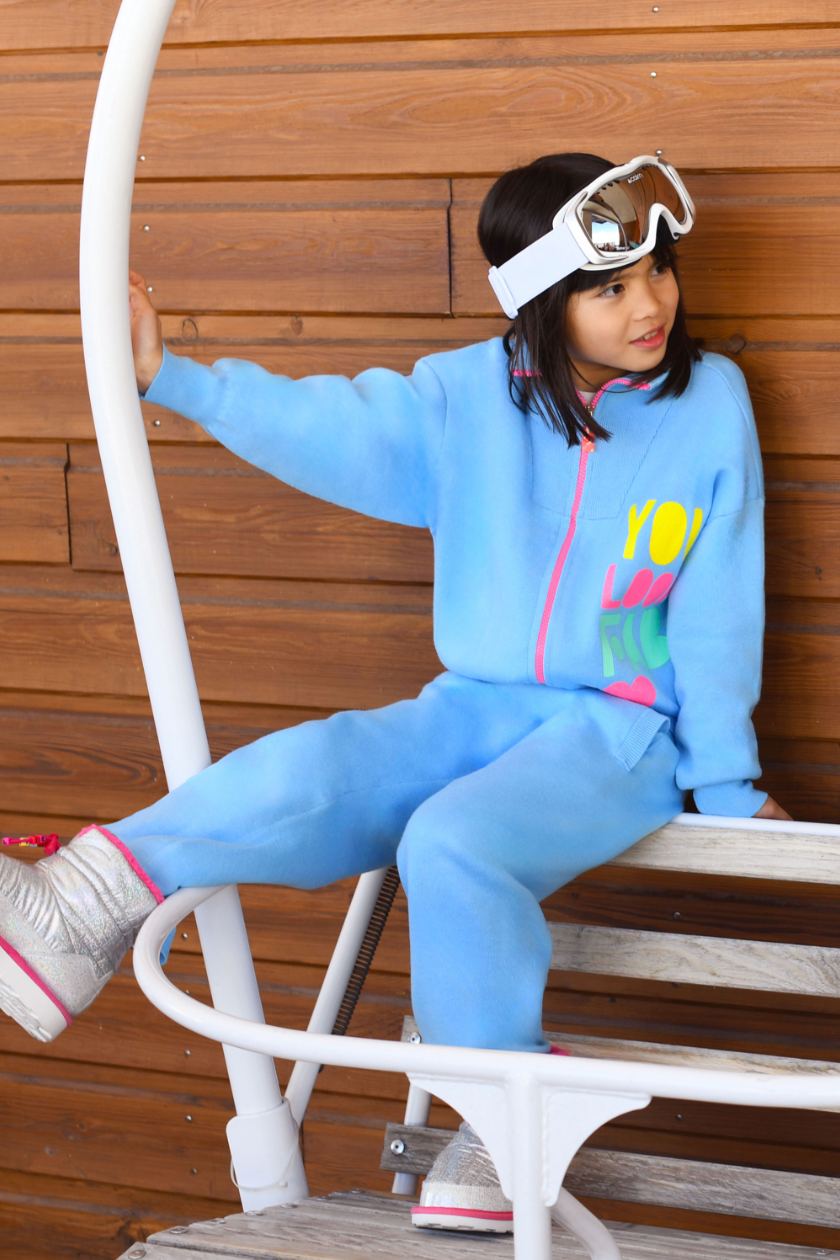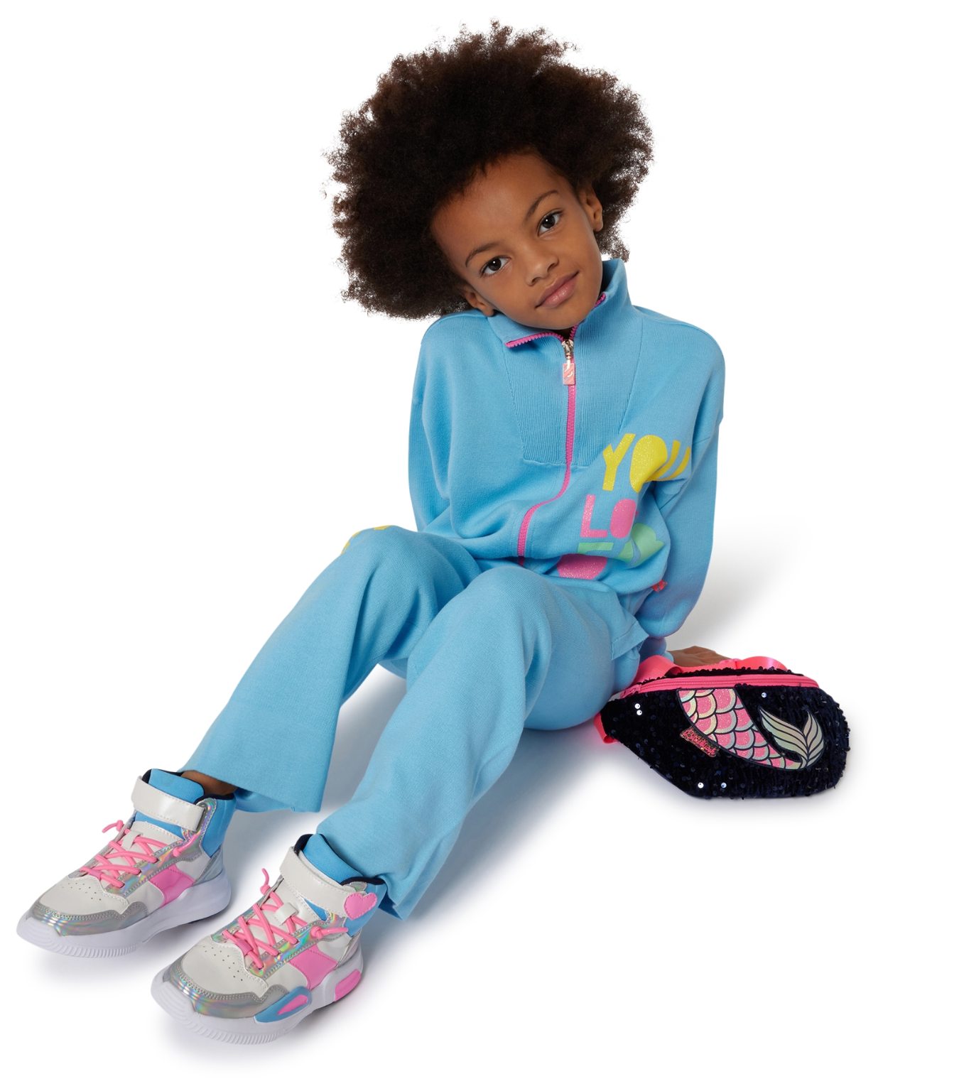 Cardigan Billieblush in maglia azzurro con zip e scritte multicolor sul davanti Composizione: 53% cotone 39% viscosa 8% poliammide
