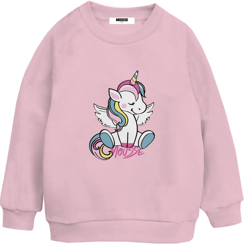 Felpa Mousse girocollo rosa con unicorno sul davanti