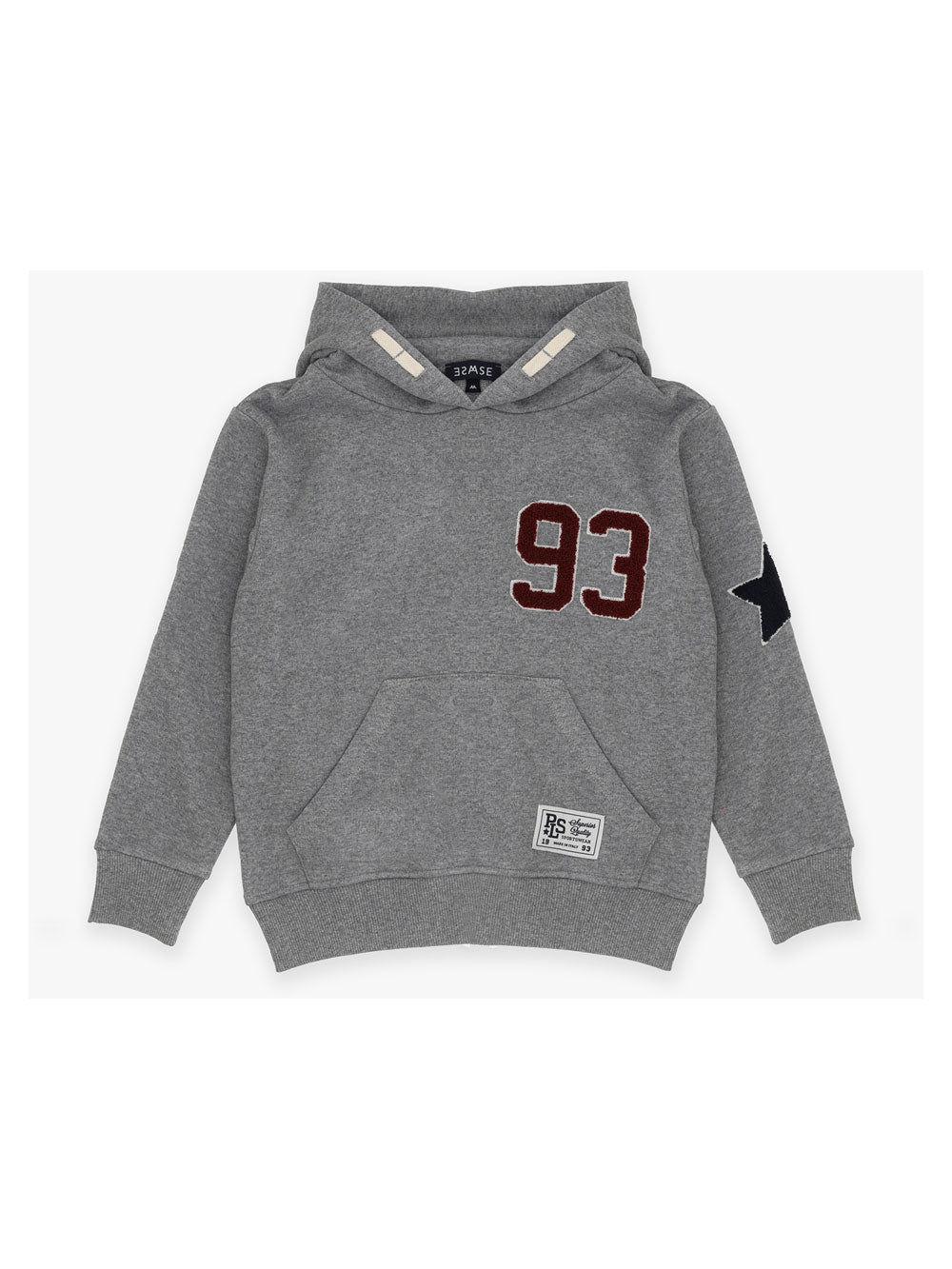 Felpa Please grigia con cappuccio e tasche sul davanti
