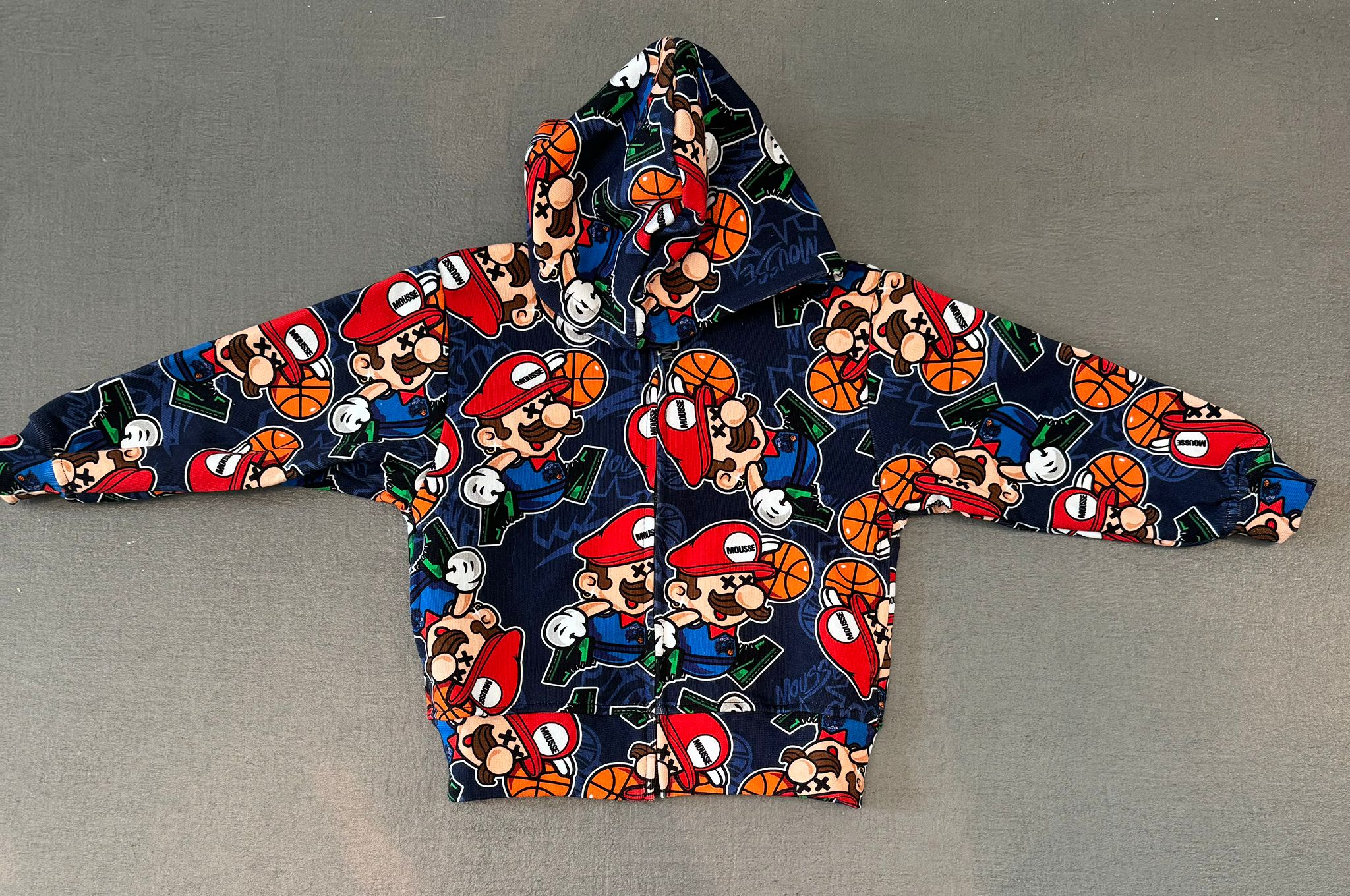 Felpa Mousse con zip e cappuccio con stampa super mario