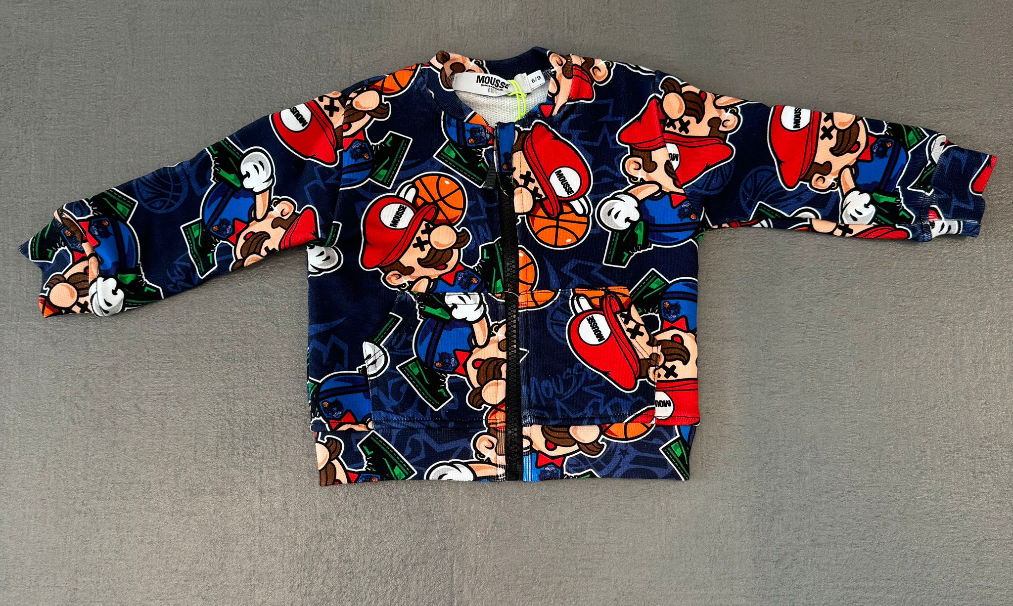 Felpa Mousse blu girocollo con zip fantasia super mario