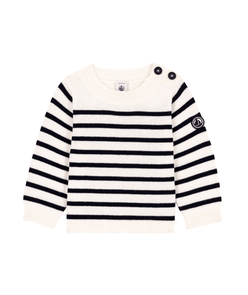 Maglione Petit Bateau di lana e cotone rigato bianco e blu