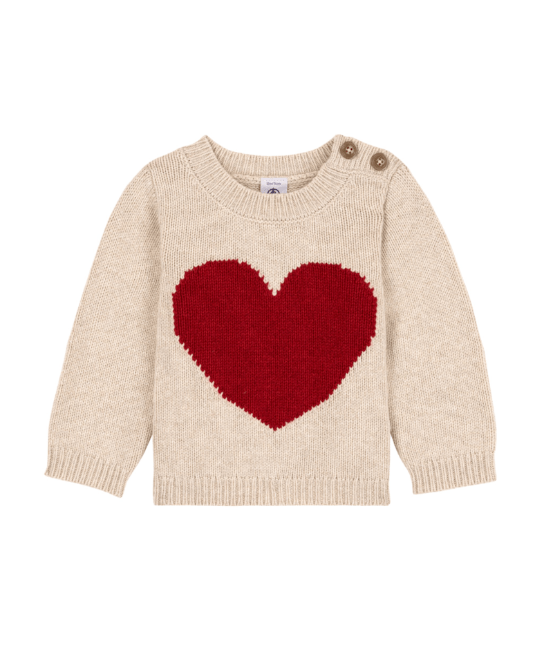 pullover in maglia con lana unisex beige con cuore Petit Bateau