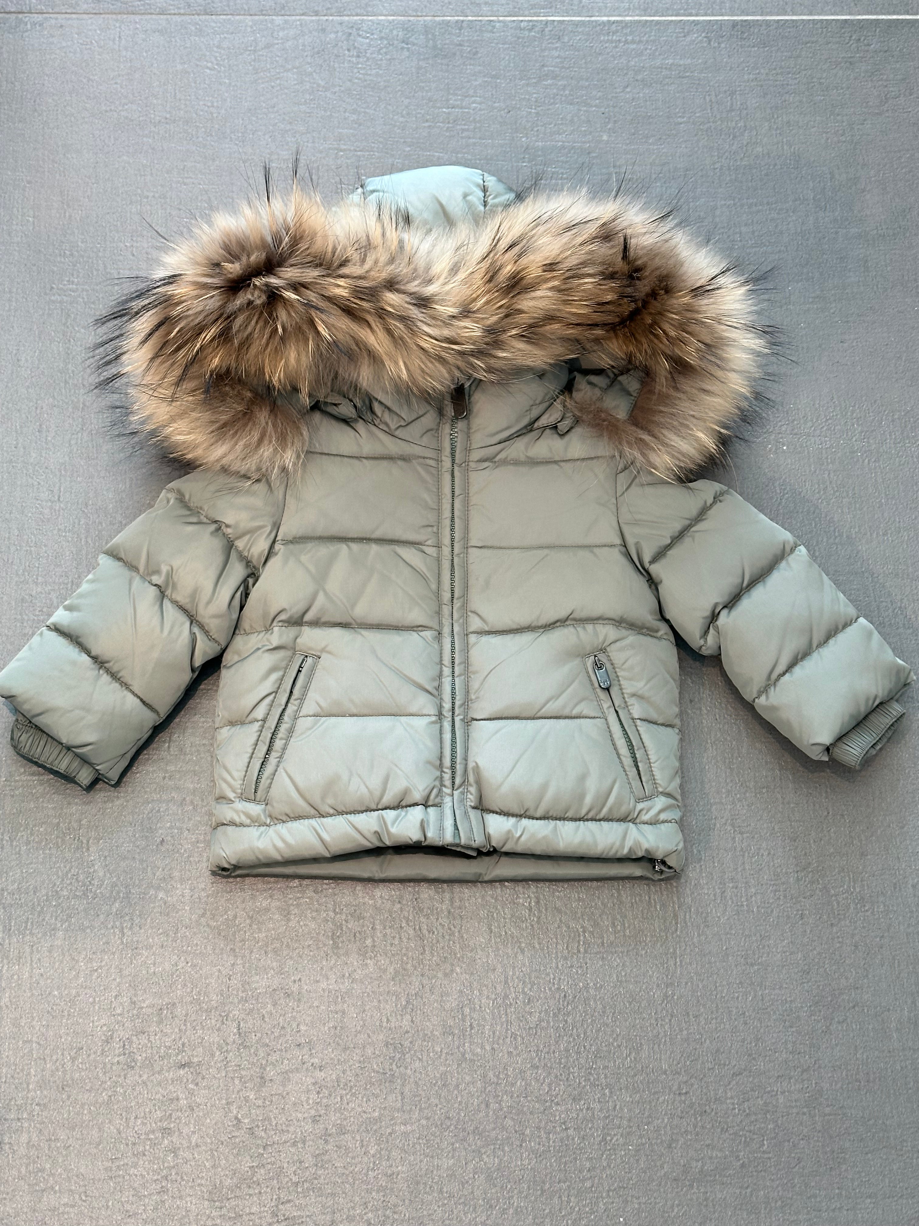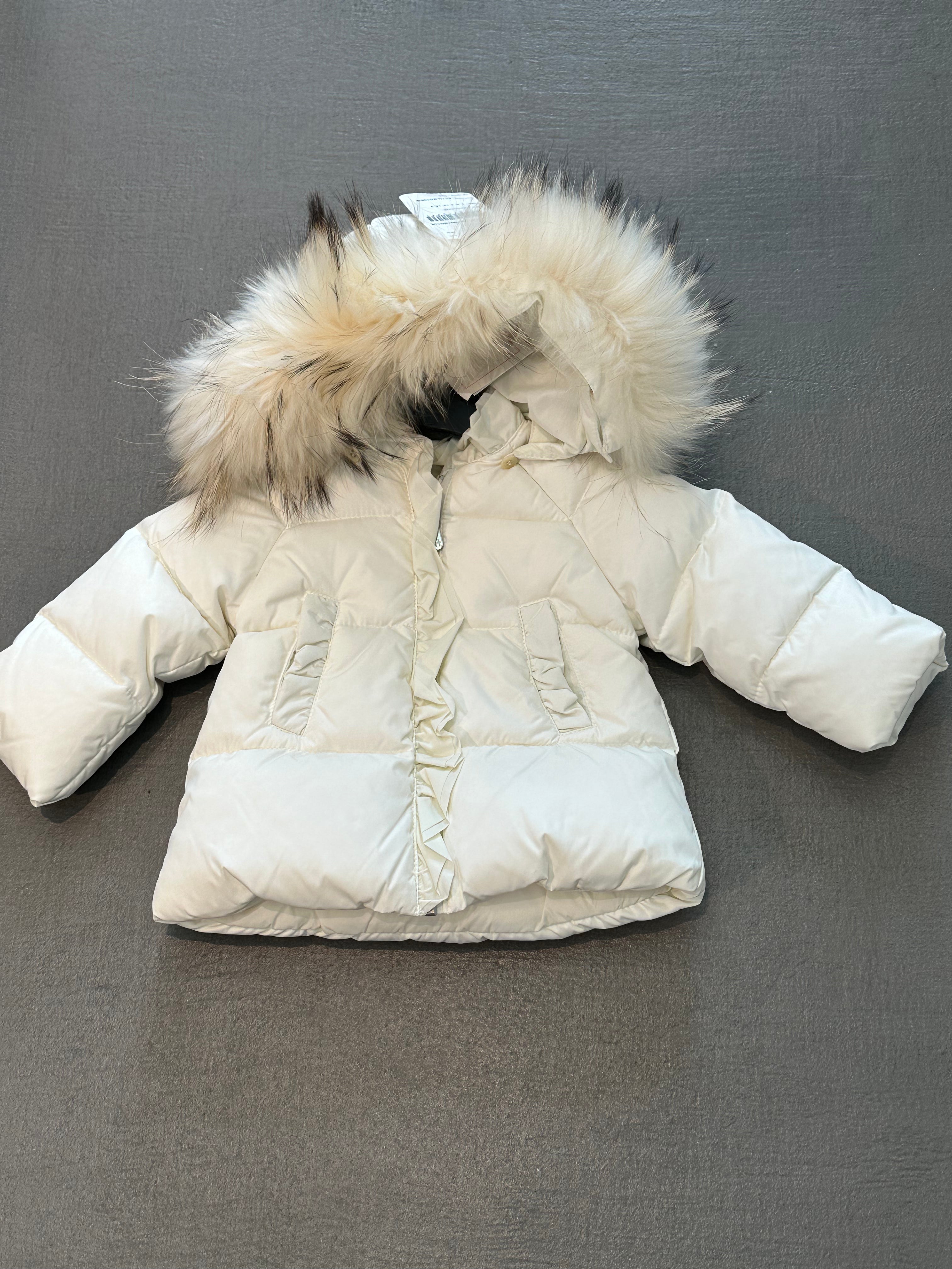 IlGufo piumino bimba color burro con cappuccio in pelliccia
