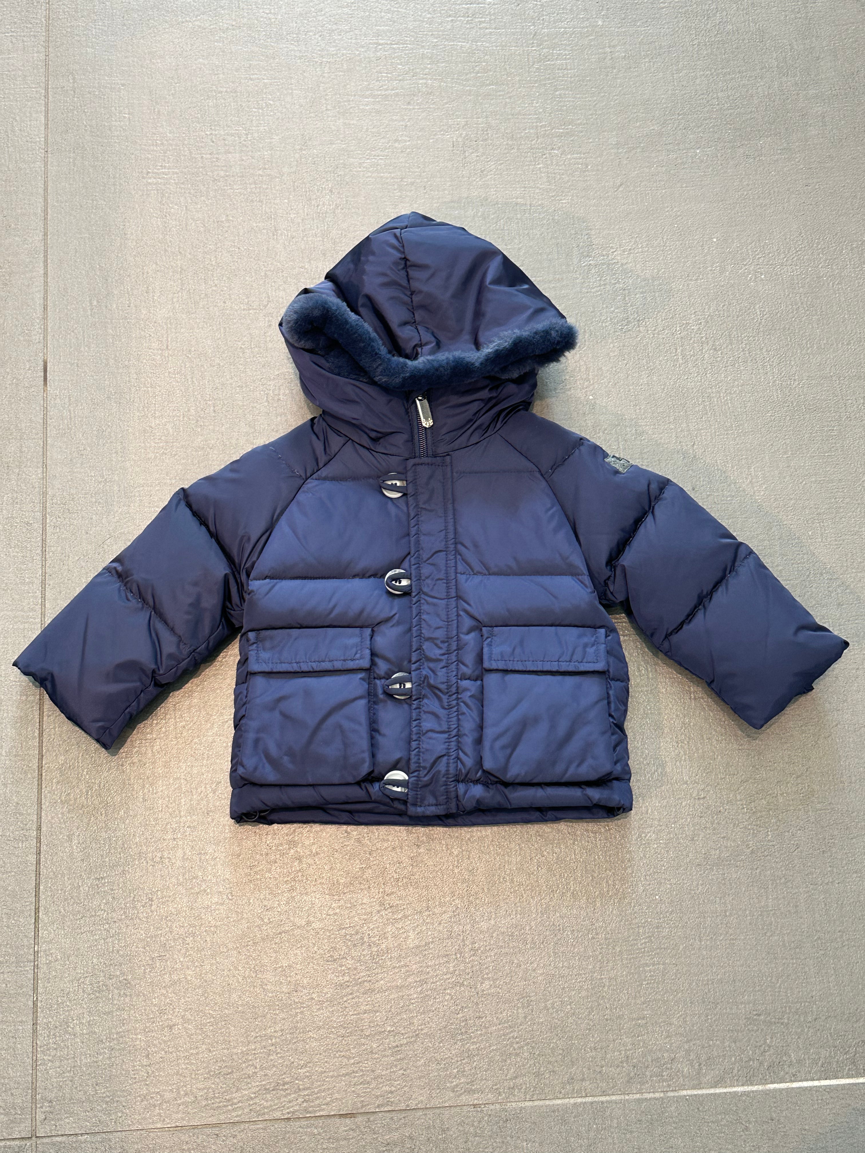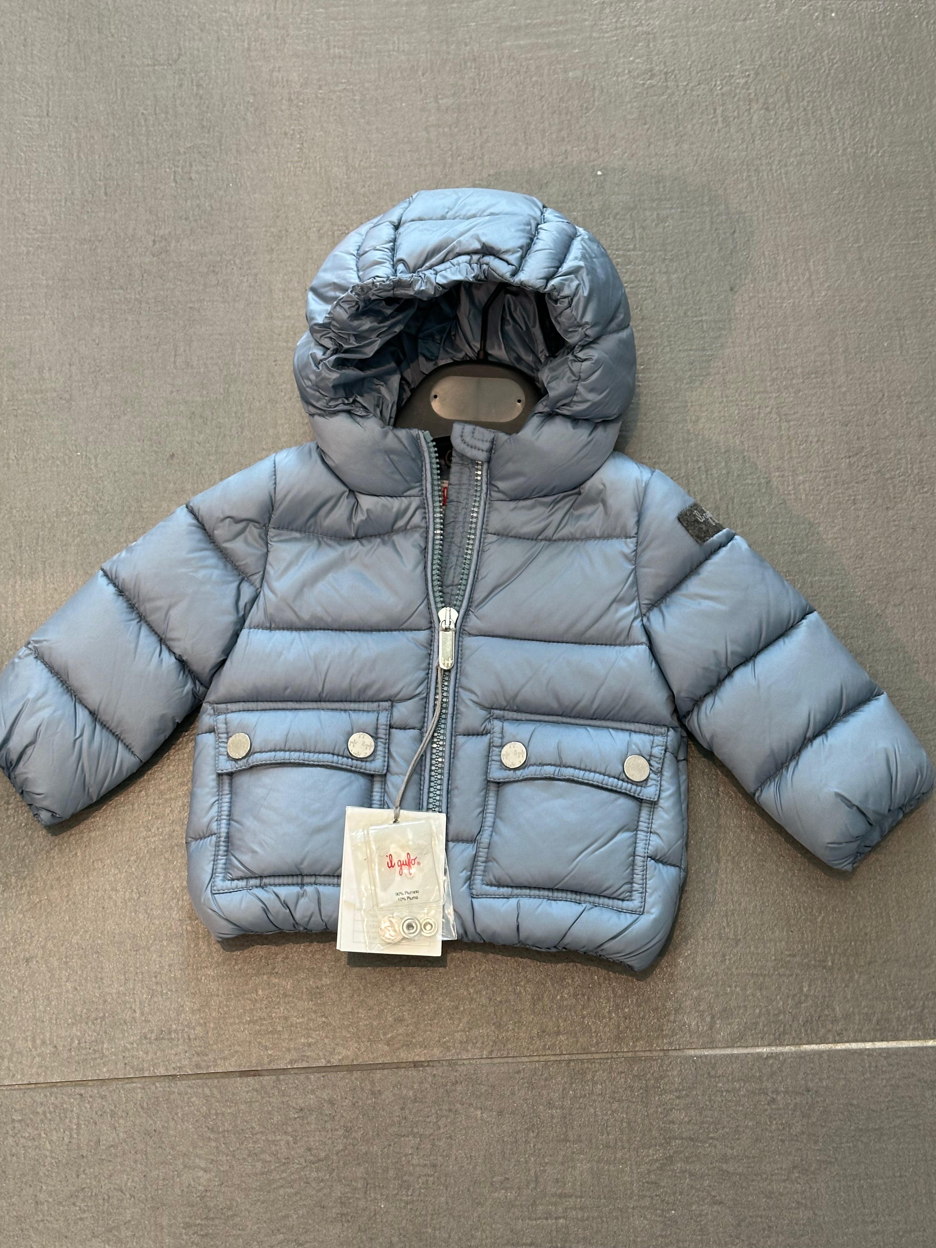 IlGufo piumino blu con cappuccio in pelo interno tono su tono