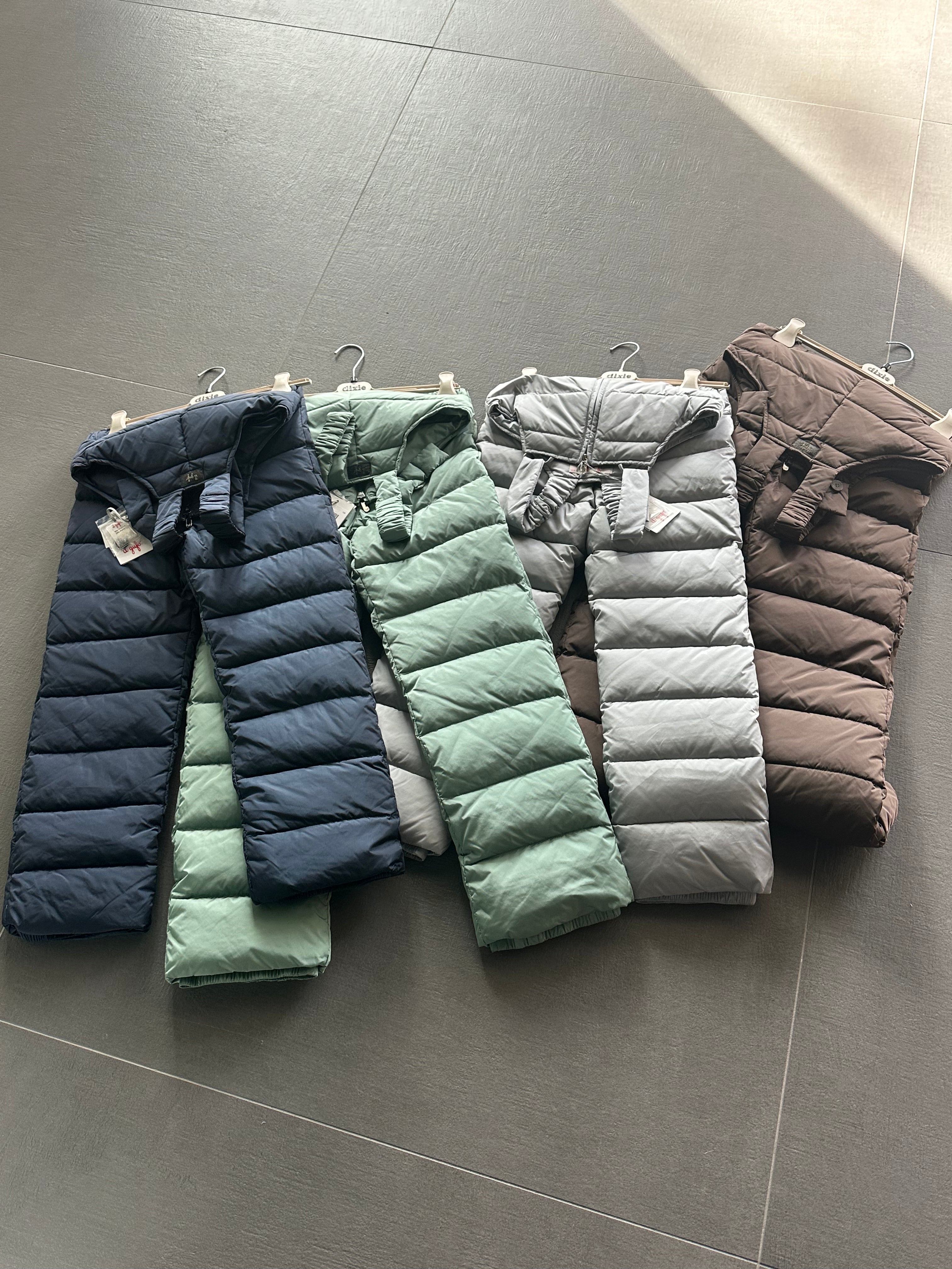 Pantalone Mousse in tuta di colore azzurro con scritta "Mousse" verde sul lato sinistro