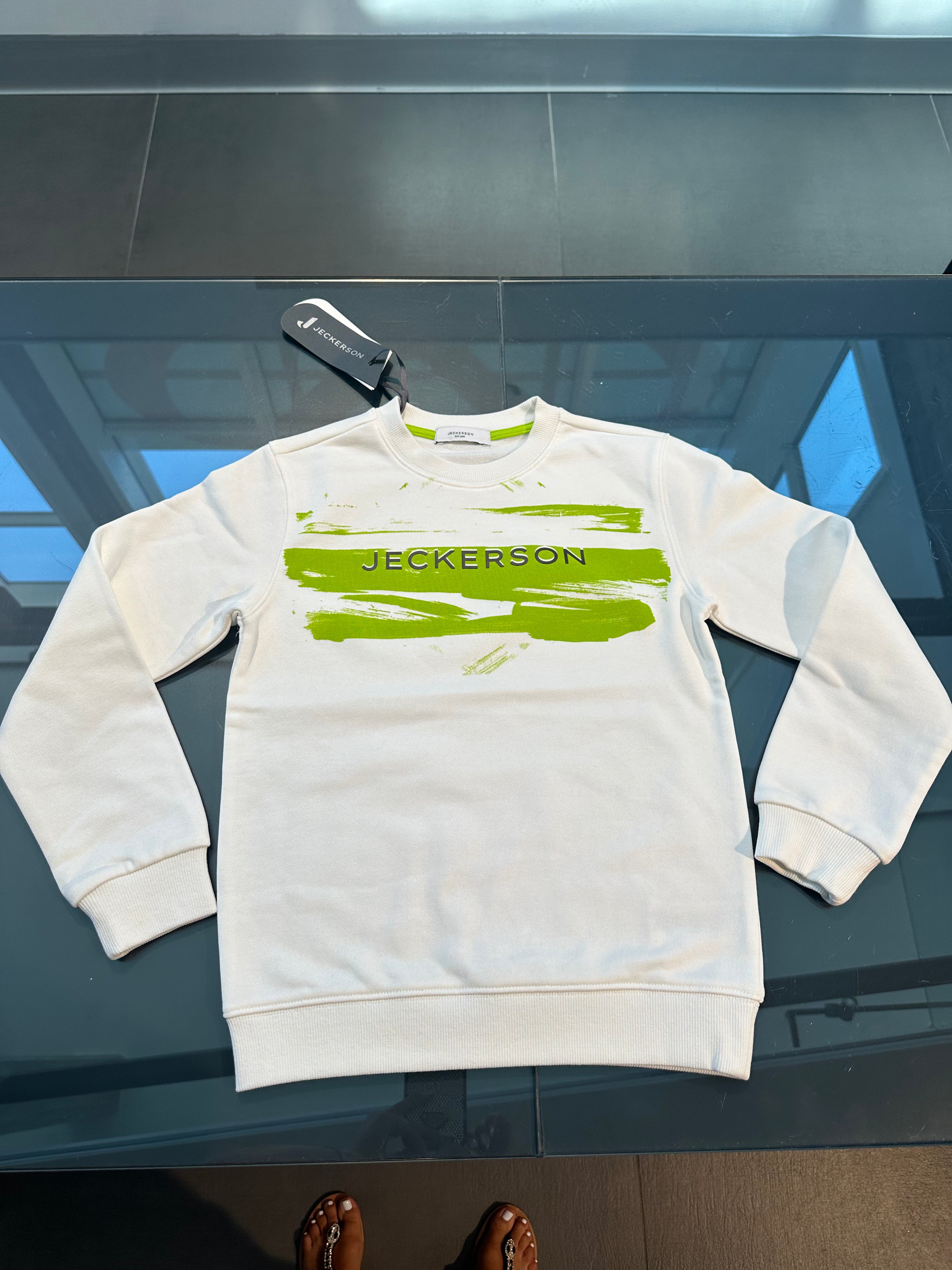 Felpa jeckerson bianca con scritta nera e sfumatura lime