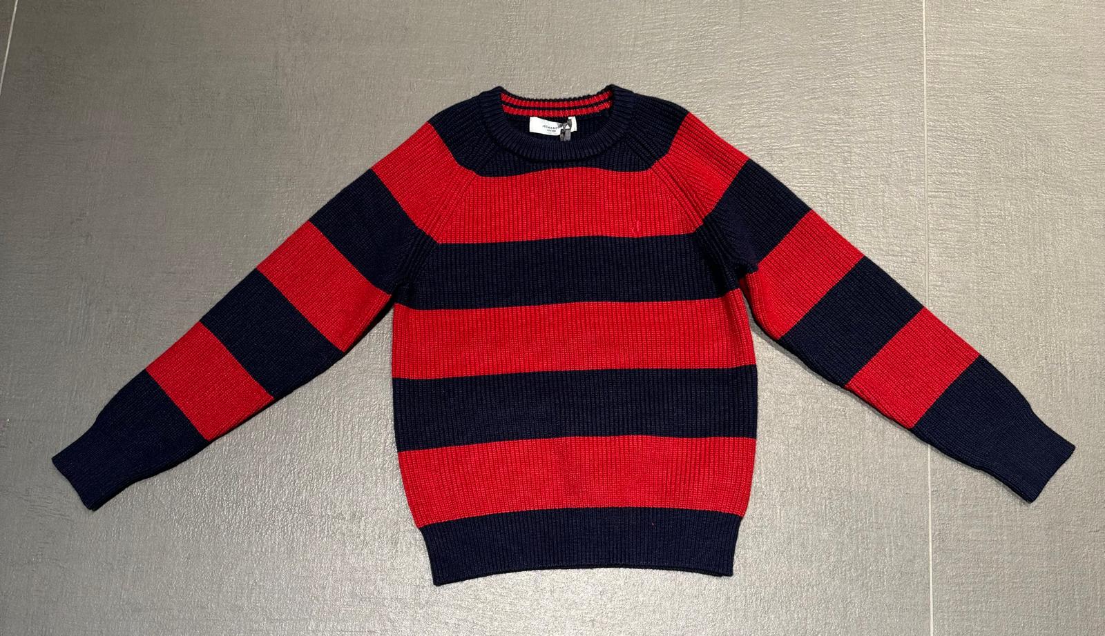 Maglione jeckerson a righe blu e rosse . Composizione 50% viscosa 22% nylon 28% poliestere