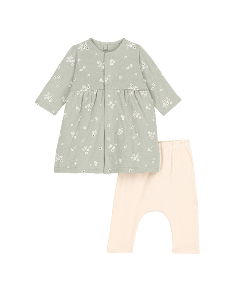 Completo Petit Bateau camicia verde con fiori e leggings