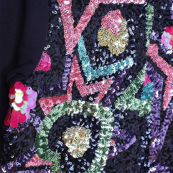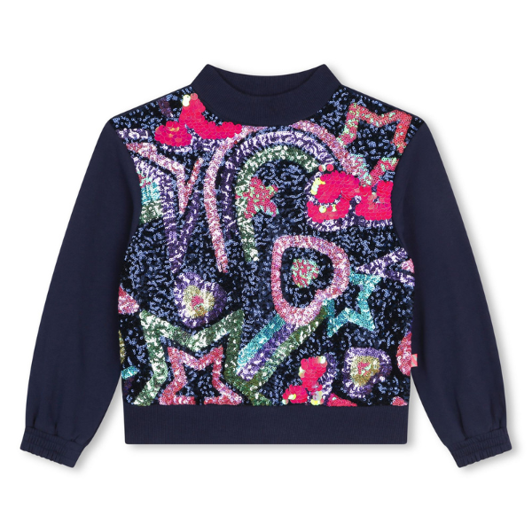 Felpa Billieblush blu con fantasia di paillettes multicolor