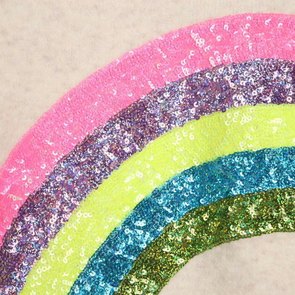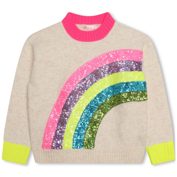 Maglione Billieblush avorio con arcobaleno di paillettes multicolor
