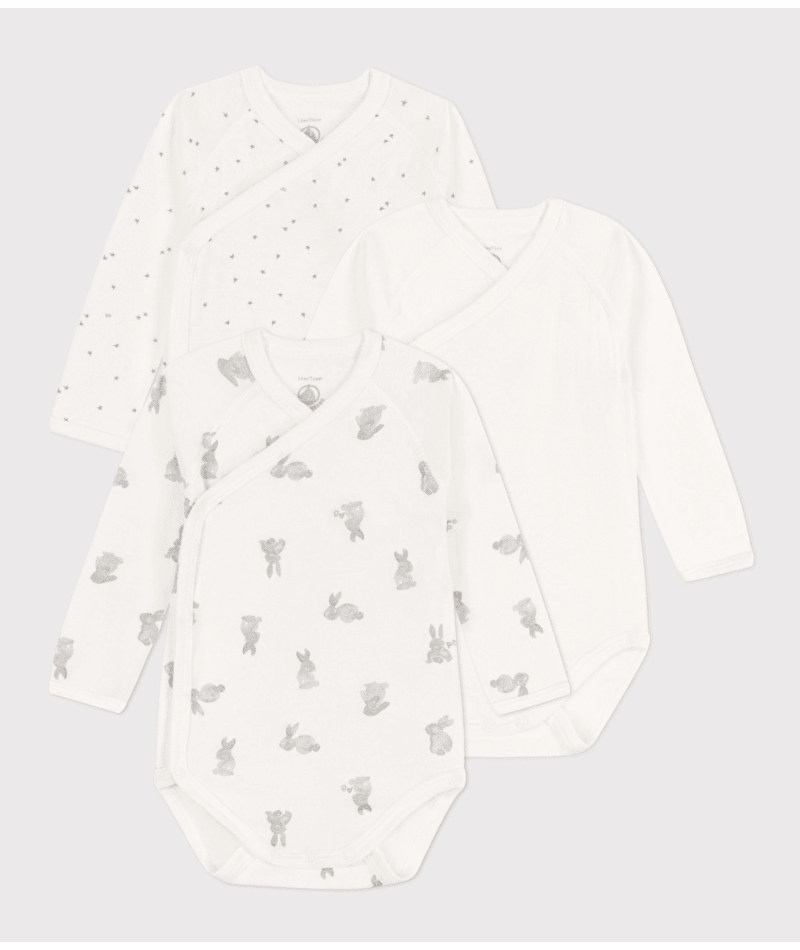 Set 3 body Petit Bateau manica lunga antipatico con fantasia conigli