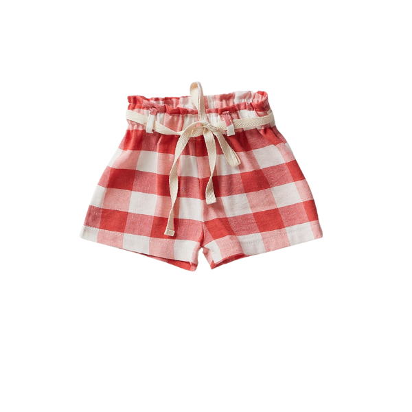 Pantaloncino Aventiquattrore a quadri bianco e rosso tenue con elastico e laccio in vita