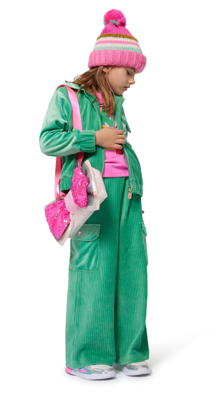 Pantalone Billieblush verde in velluto a coste con tasconi