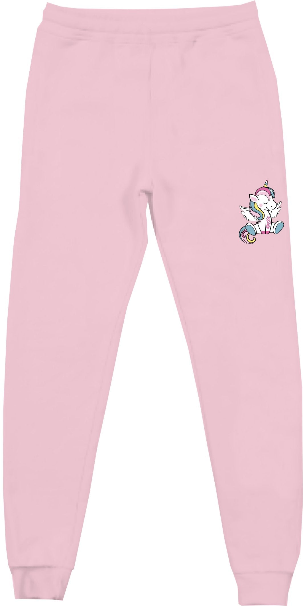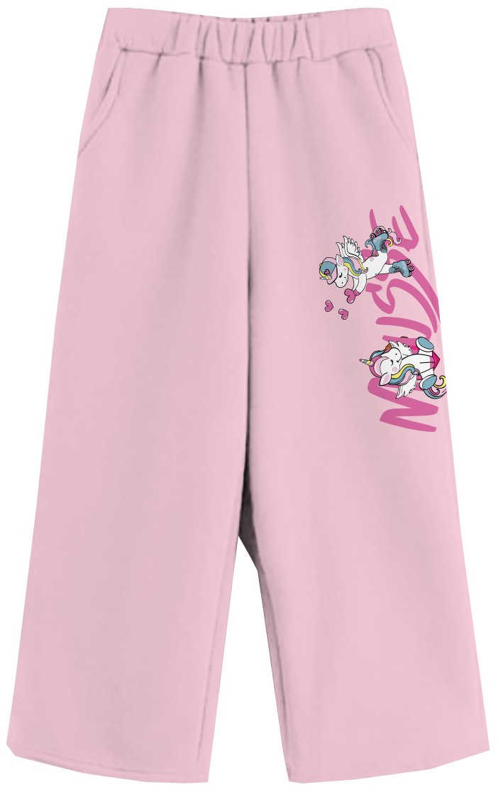 Pantalone Mousse rosa in felpa con unicorno sul lato ed elastico sul fondo