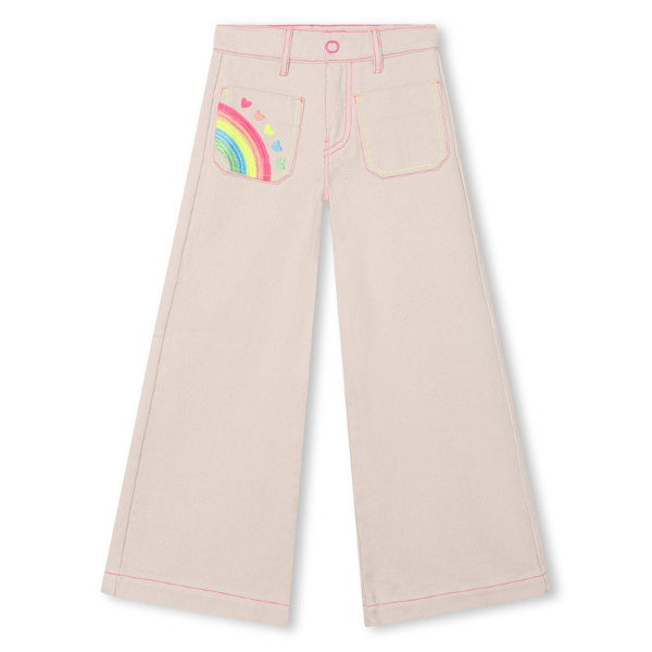Jeans Billieblush color sabbia con tasca davanti con ricamo fantasia