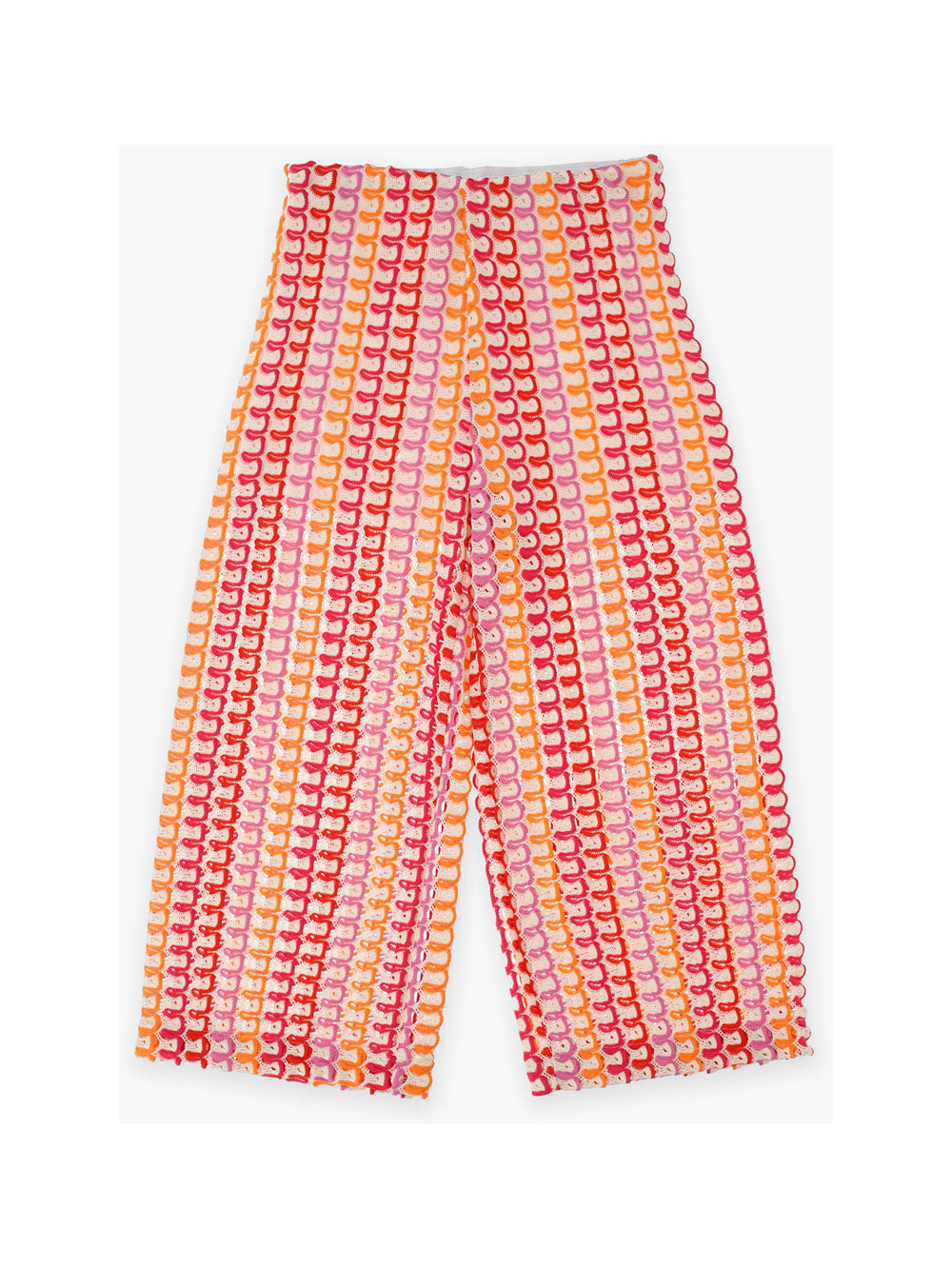 Pantalone Dixie fucsia a palazzo con elastico in vita e balze sul fondo