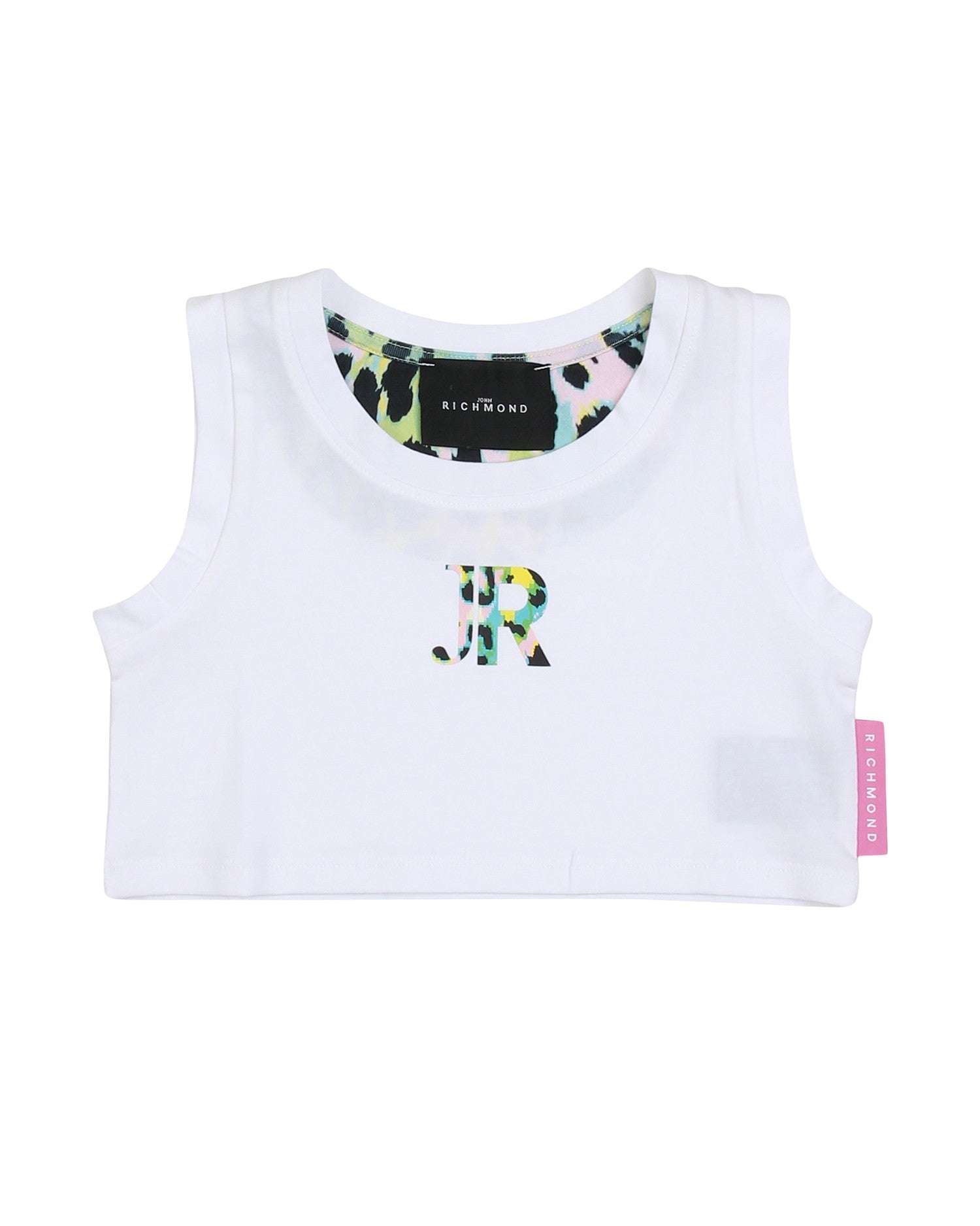 Top Richmond smanicato bianco con logo maculato sul davanti