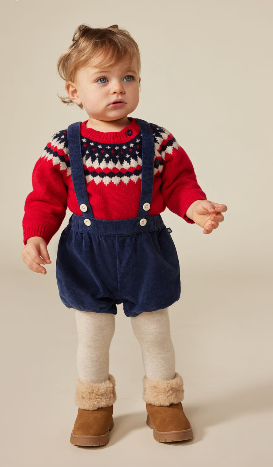 Salopette blu corta in velluto Petit Bateau