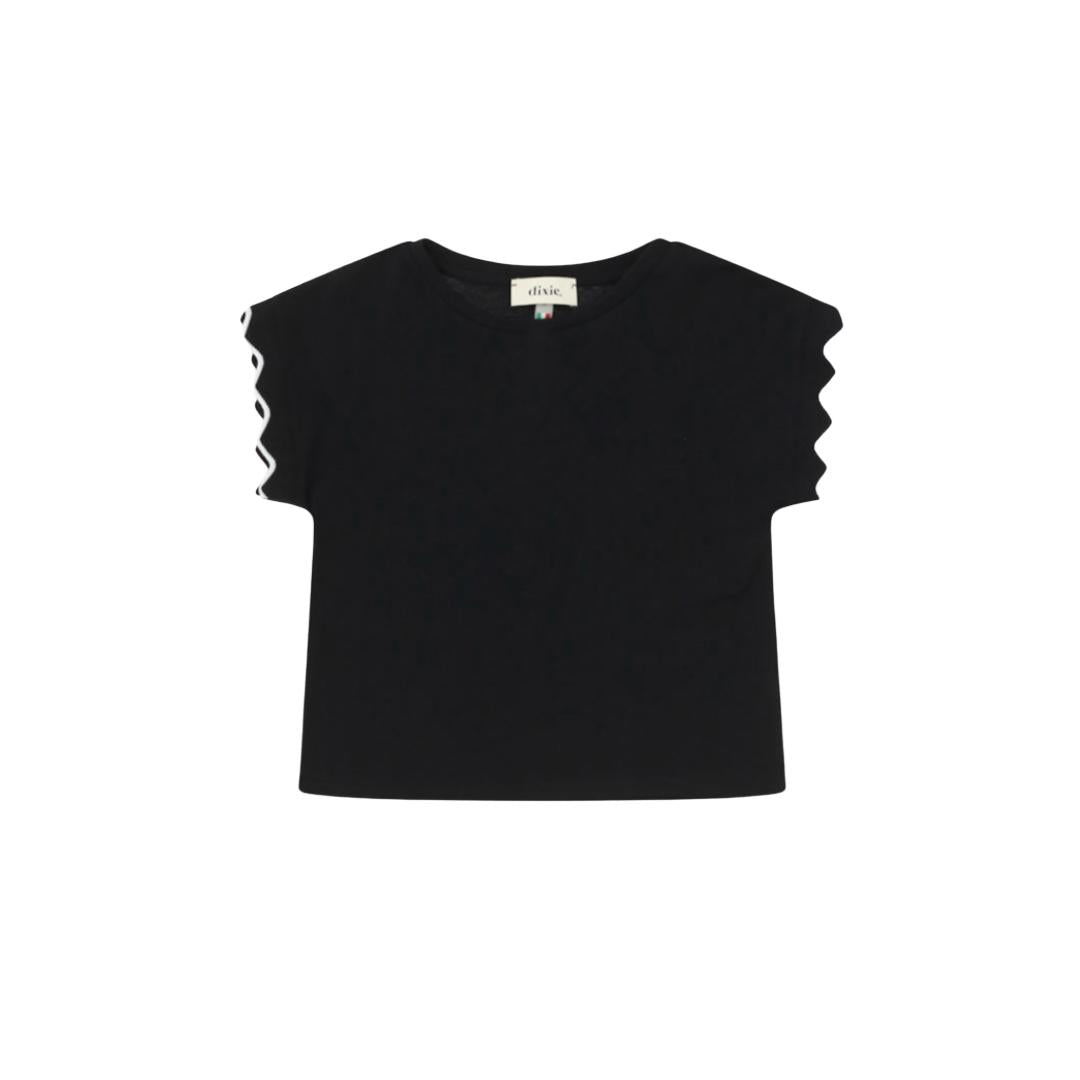 Tshirt Dixie nera girocollo con manica con rouches in maglia con profilo panna