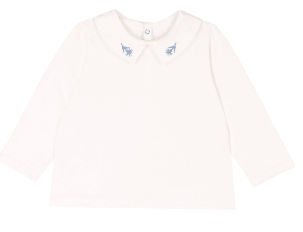 Tshirt Petit Bateau a manica lunga panna con colletto con fiorellino azzurro