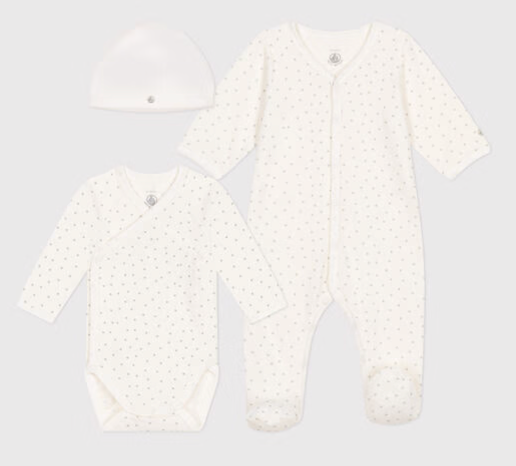 Set Petit Bateau tutina body e cappellino con fantasia piccoli cuori