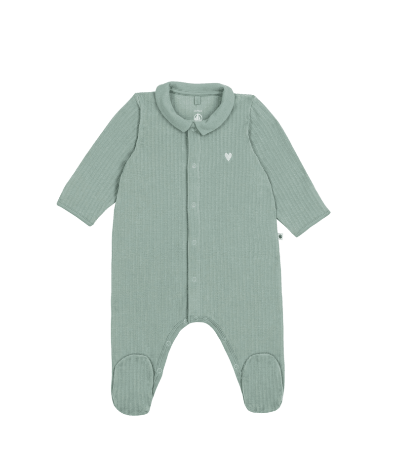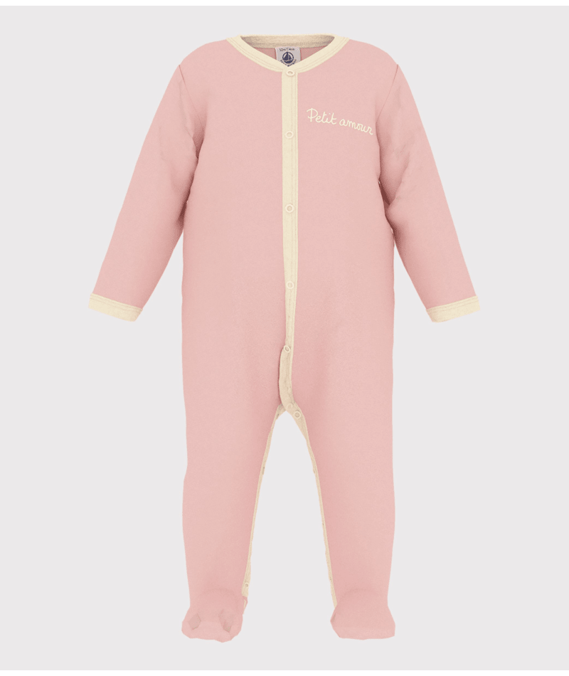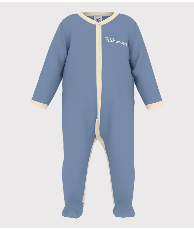 Tutina Petit Bateau intera con profili beige e scritta lato sinistro