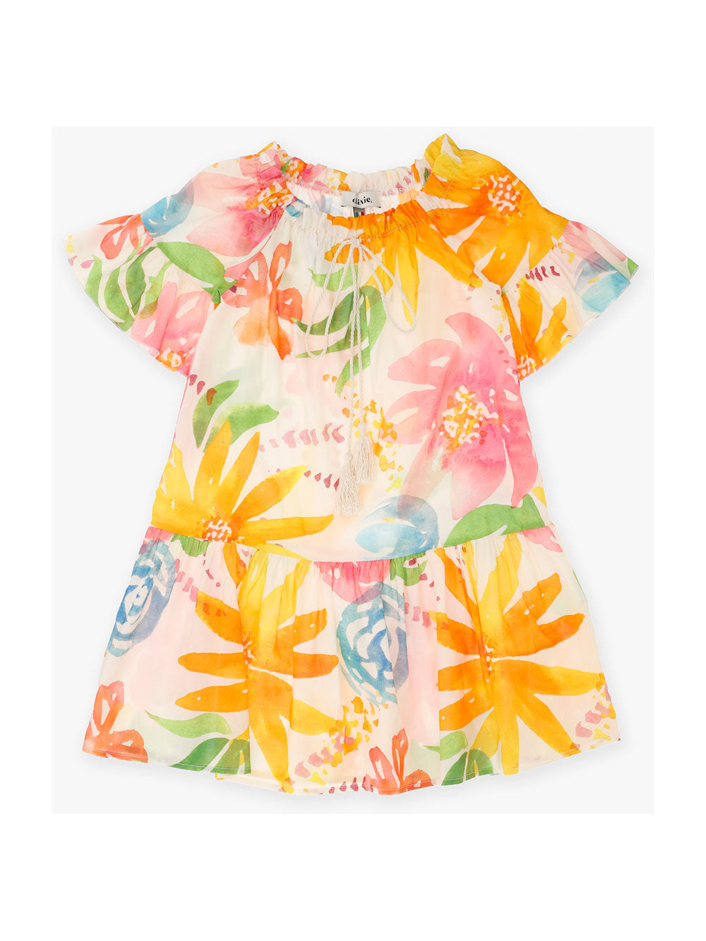 Abito Dixie fantasia multicolor con mezza manica con arricciatura e coulisse sotto il collo