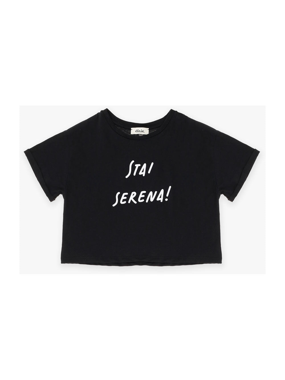 Tshirt Dixie crop a mezza manica con scritta sul davanti "Stai serena!"
