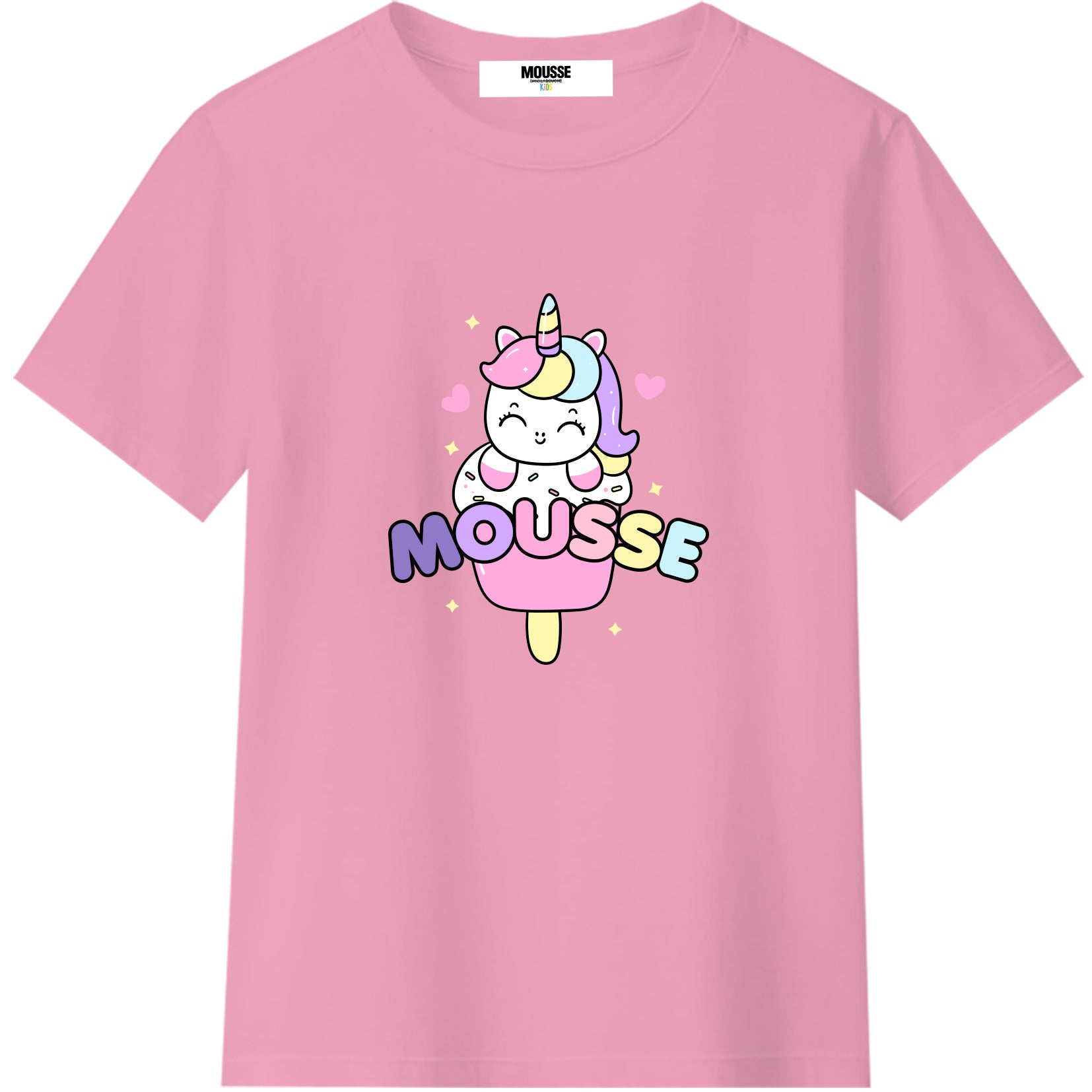 Tshirt Mousse a mezza manica con unicorno e gelato sul davanti con scritta "Mousse"