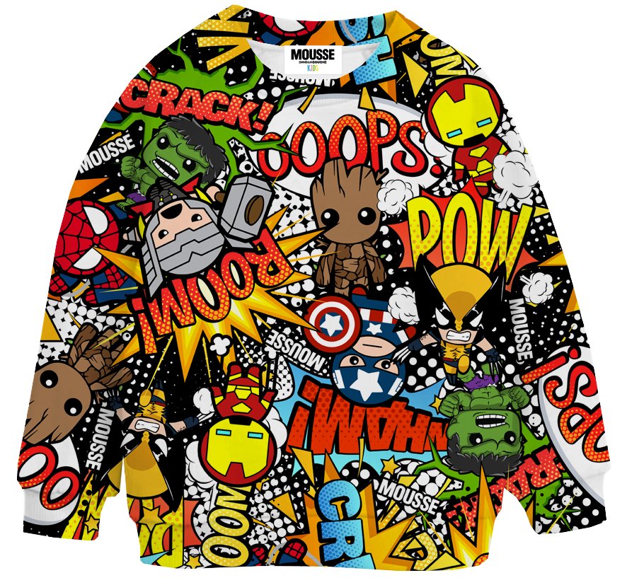 Felpa Mousse girocollo con fantasia superfriend multicolor