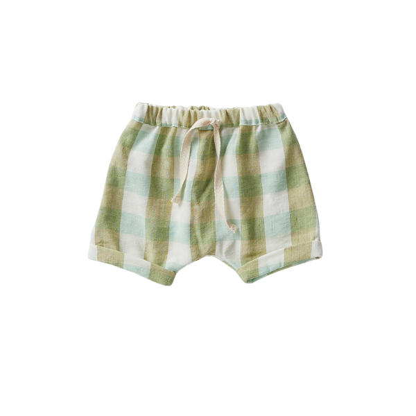 Pantaloncino Aventiquattrore a quadri bianco e verde con elastico e laccio in vita e risvolto sul fondo