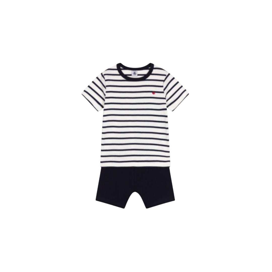 Pigiama corto Petit bateau con tshirt mezza manica a righe e pantaloncino blu