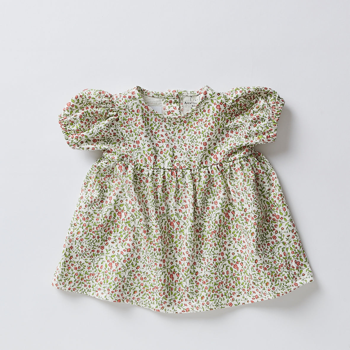 Abito Aventiquattrore a mezza manica con fantasia fiori bottoncini sul retro arricciatura sotto il petto con culotte
