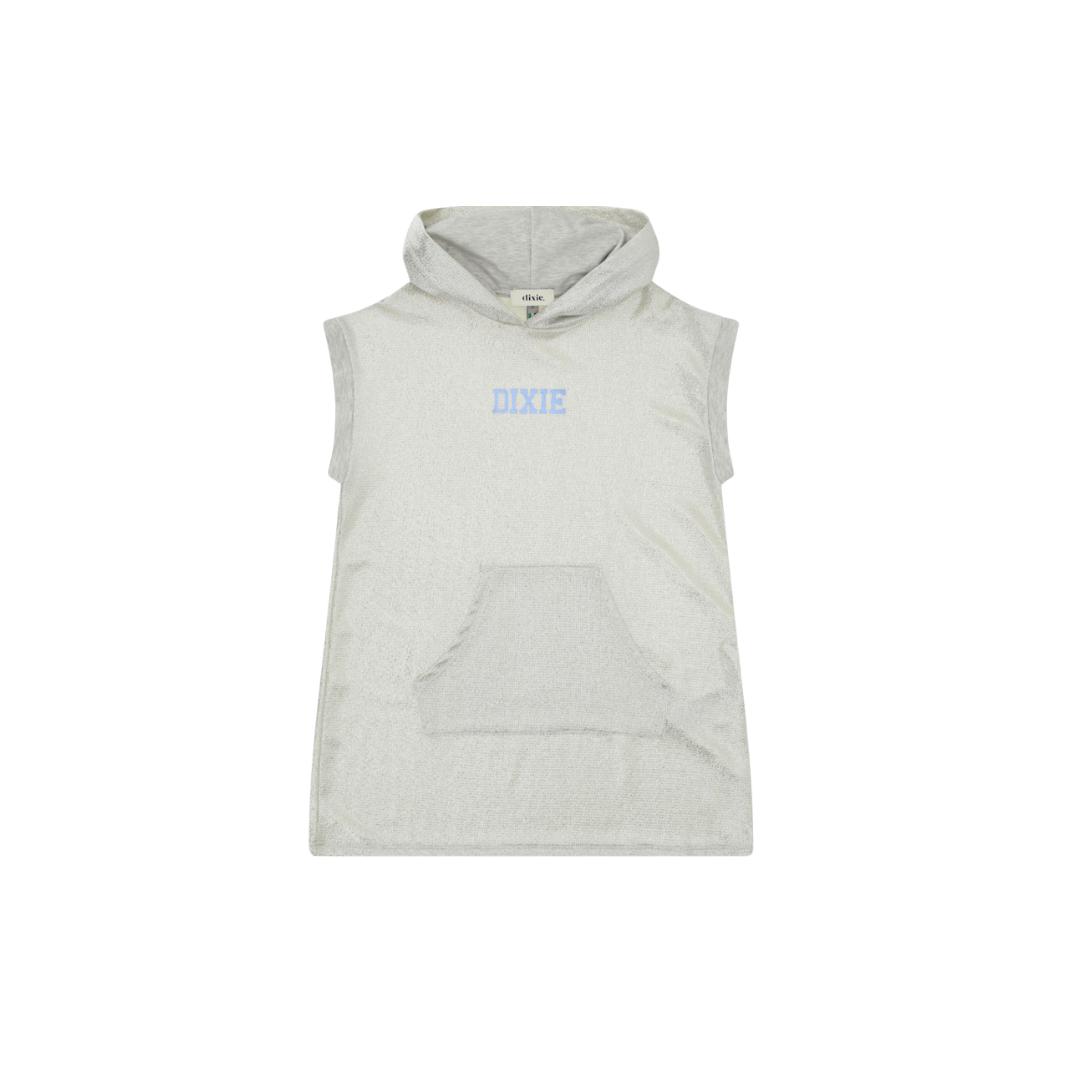 Abito Dixie smanicato laminato argento con tasche e cappuccio con logo sul davanti