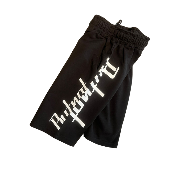 Bermuda ButNot in felpa di colore nero con scritta bianca laterale e sul retro lato sinistro con tasche ed elastico in vita