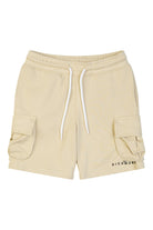Bermuda Richmond beige con tasconi laterali elastico e coulisse in vita con piccola scritta nera sulla gamba sinistra