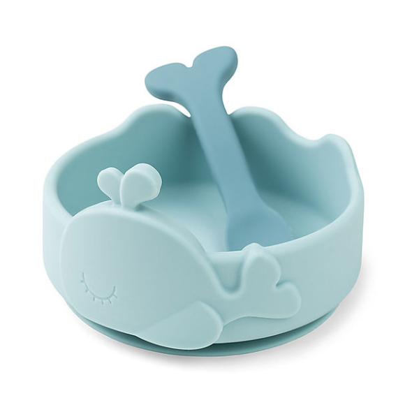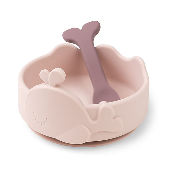 Ciotola e cucchiaino Done By Deer in silicone alimentare con ventosa antiscivolo